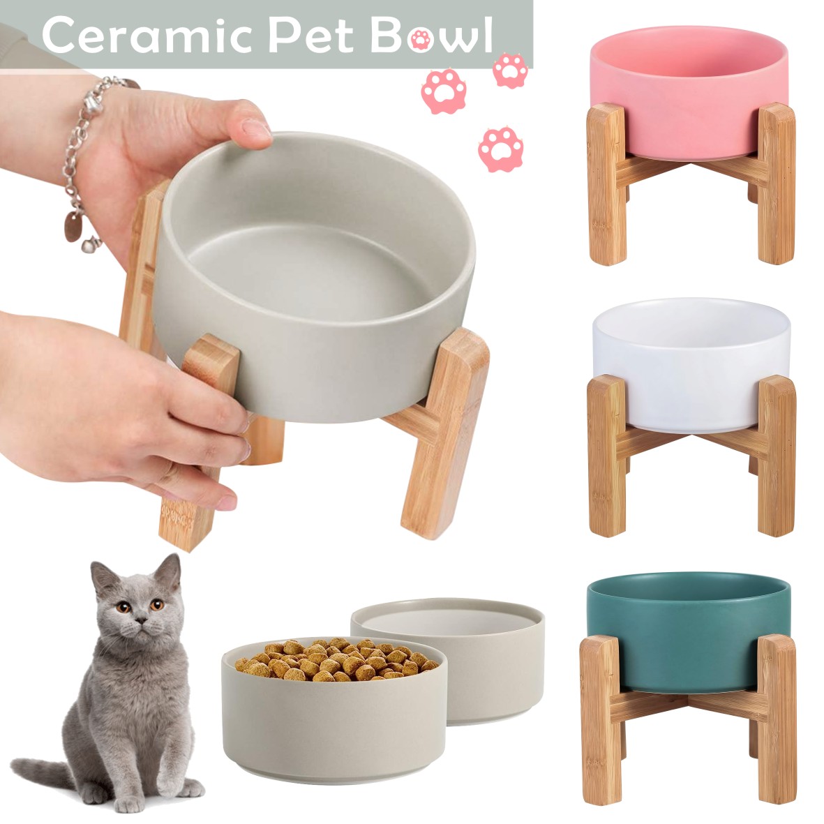 - Non-slip wood stand, the wood stand on the bowls stopping the bowls from sliding around