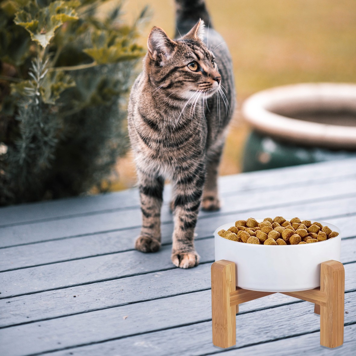 - Pets don't need to bend their heads too much to feed, prevents vomiting. especially better for elder pets’digestion