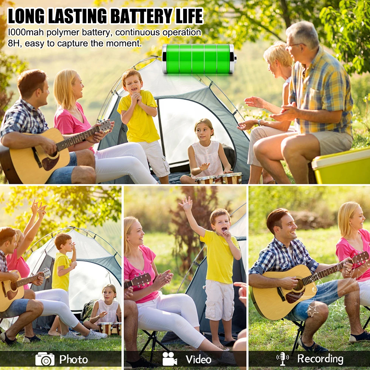 ➧Equipped with a 1000mAh rechargeable battery, it can provide up to 8 hours of recording time.