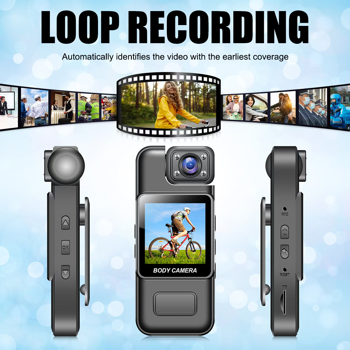 ➧The multiple advantages and stability of the video security camera make it suitable for a wide range of scenarios, including police, traffic enforcement, outdoor sports, etc. It has the performance and durability to meet a wide range of needs and can go with users anytime, anywhere.