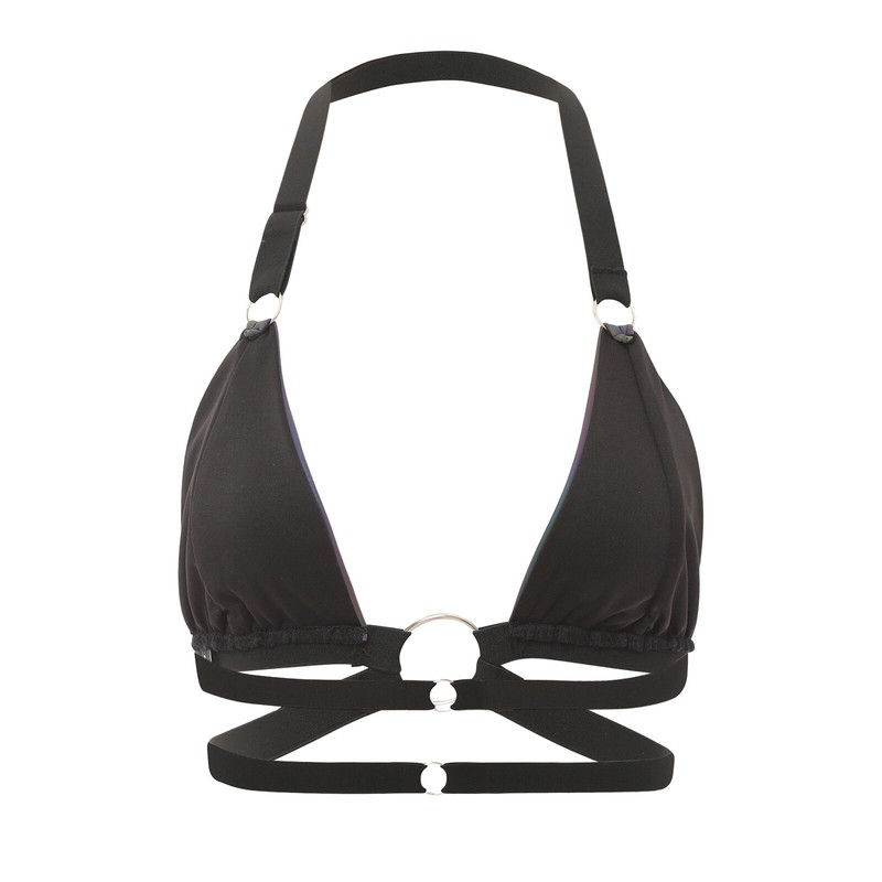 Women’s reflective bra with adjustable straps for a better fit, and O-rings add fashion elements.