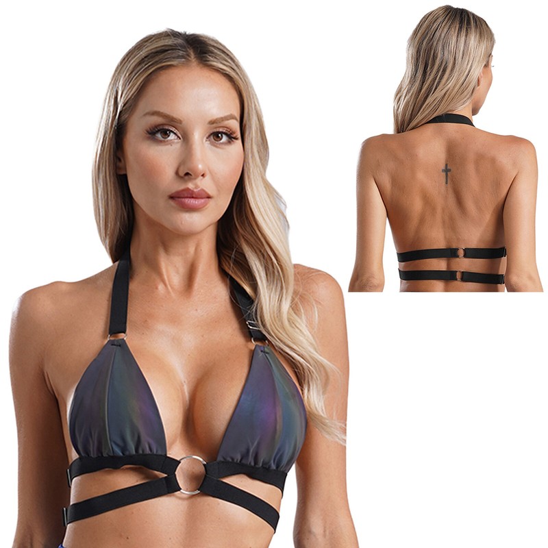 Halter backless reflective bikini bra top offers a beautiful shine in any light, shows off your body curves.
