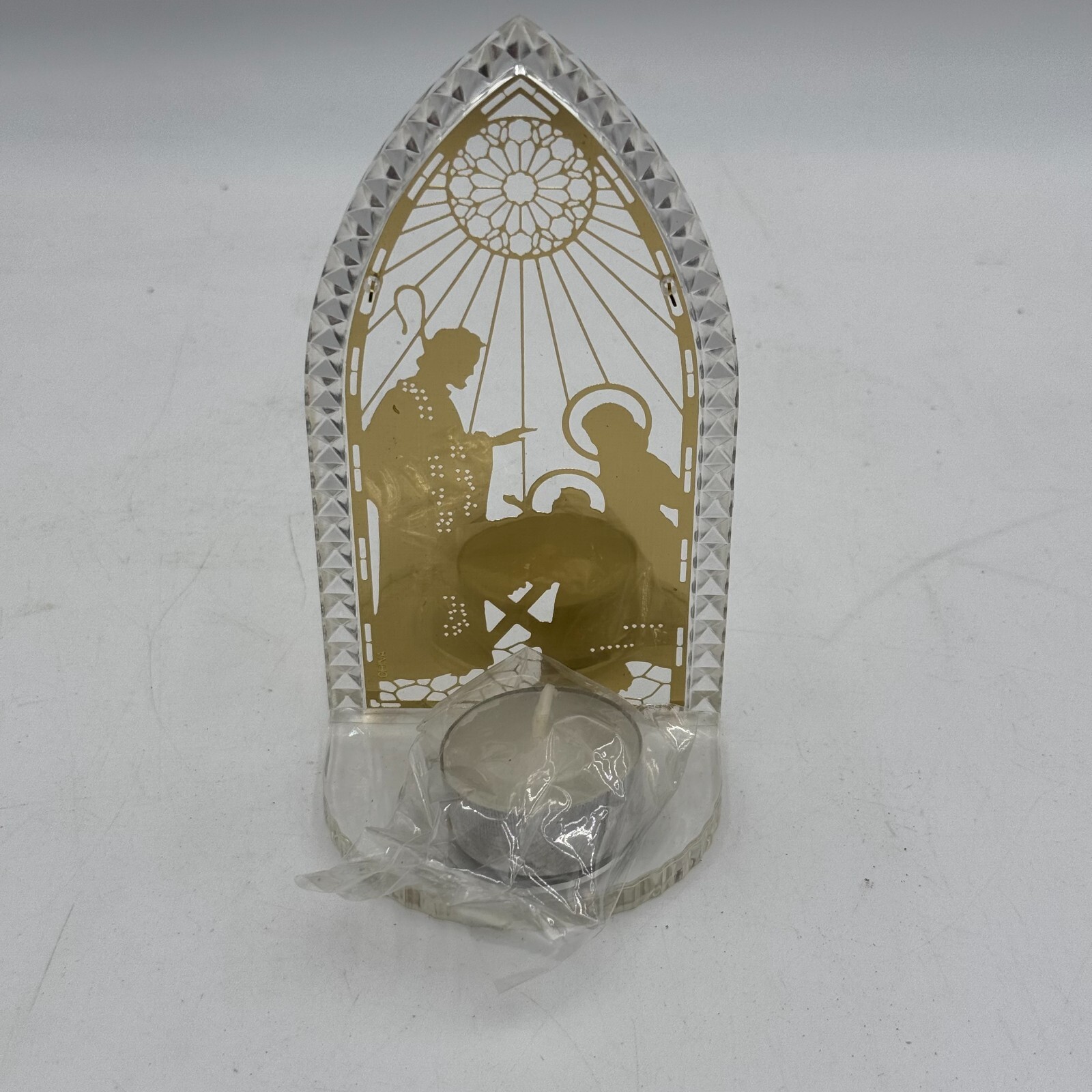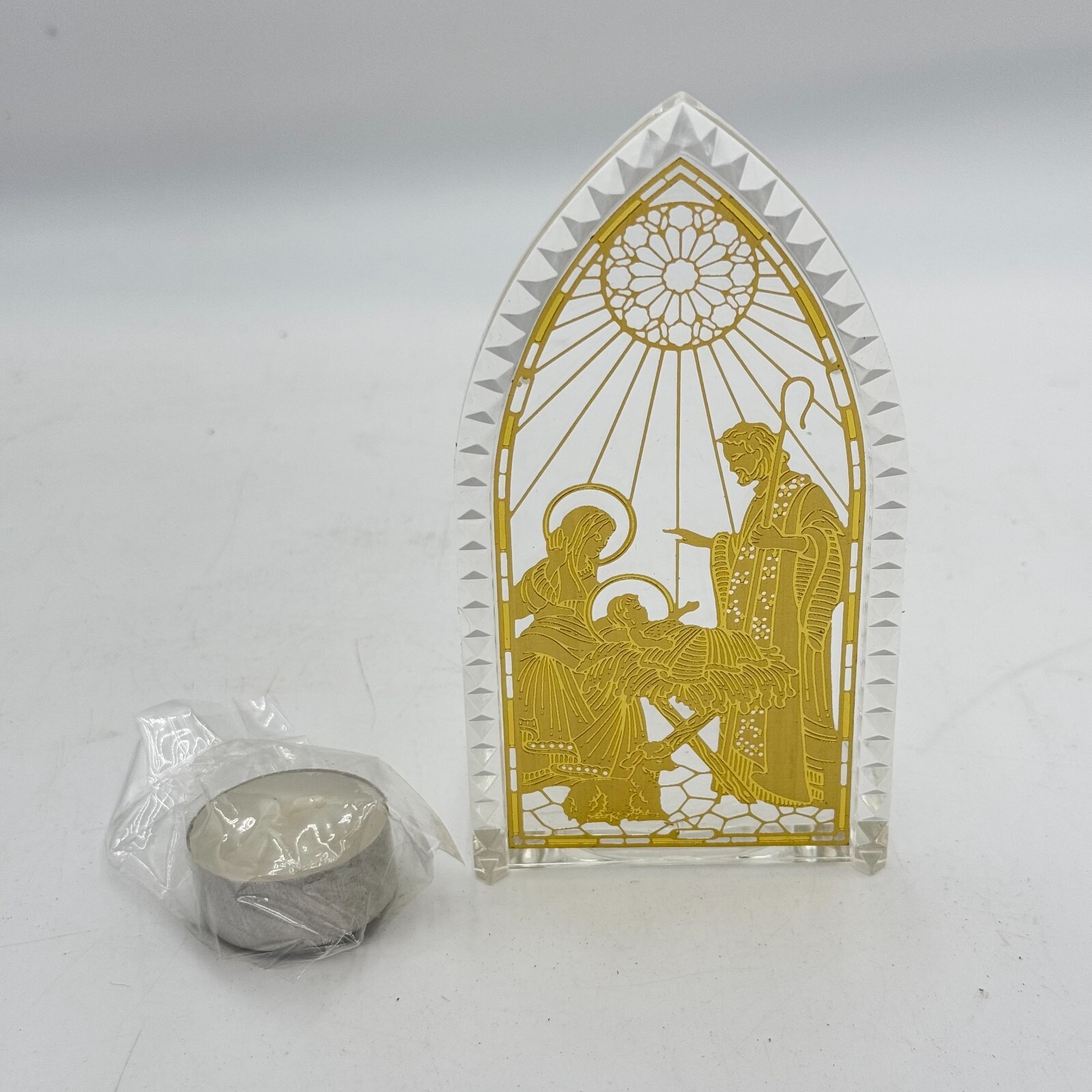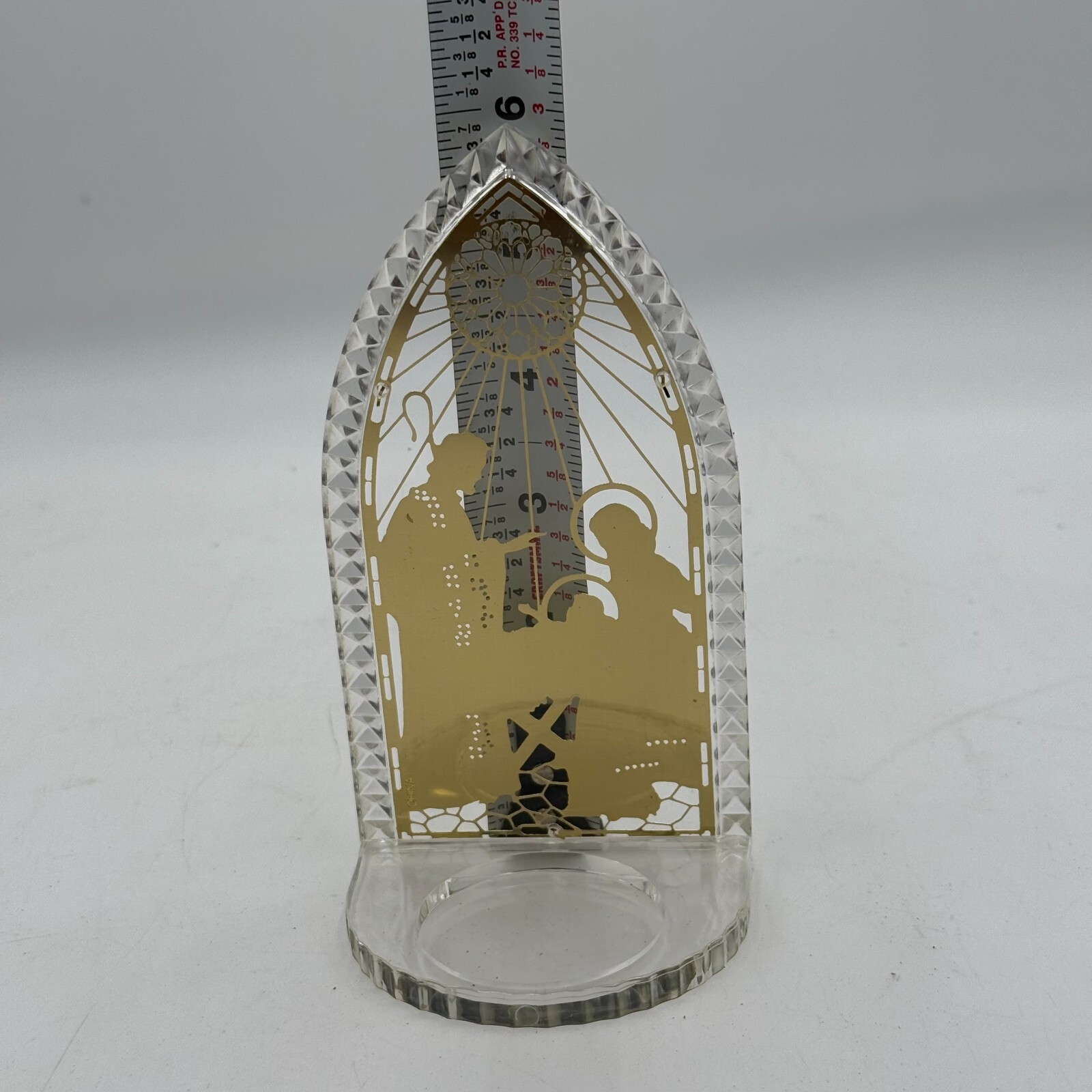 Nativity Tea Candle Display Clear Plastic Gold Manger Scene Jesus Mary Joseph