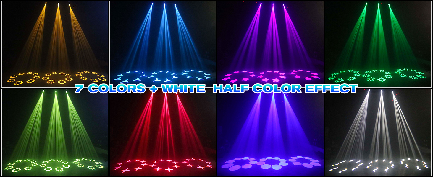 | Color wheel | 7 colors + white + half color effect + color rotating speed |
