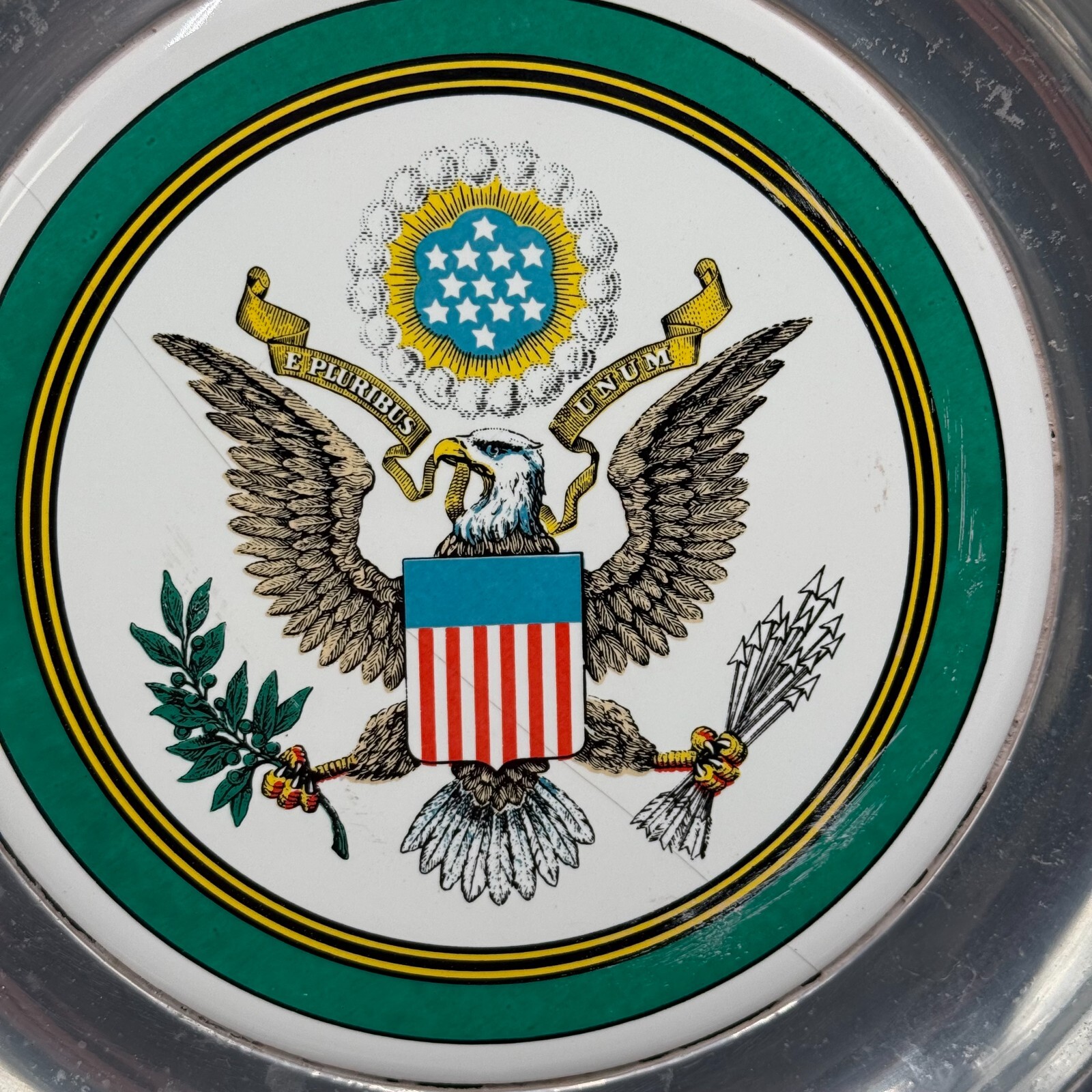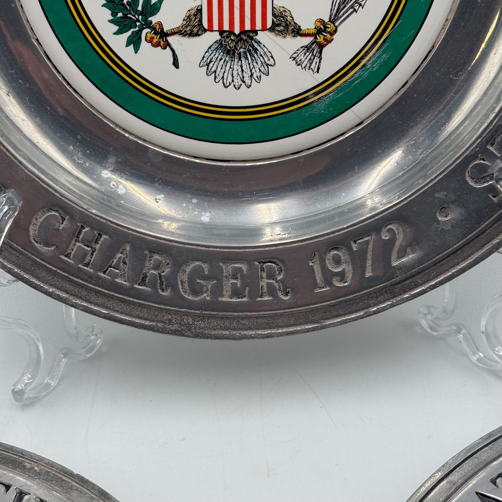 Experience the timeless elegance of America's heritage with this 3-piece set of 10.5-inch pewter plates, each featuring the distinguished United States Seal Charger design from 1972.