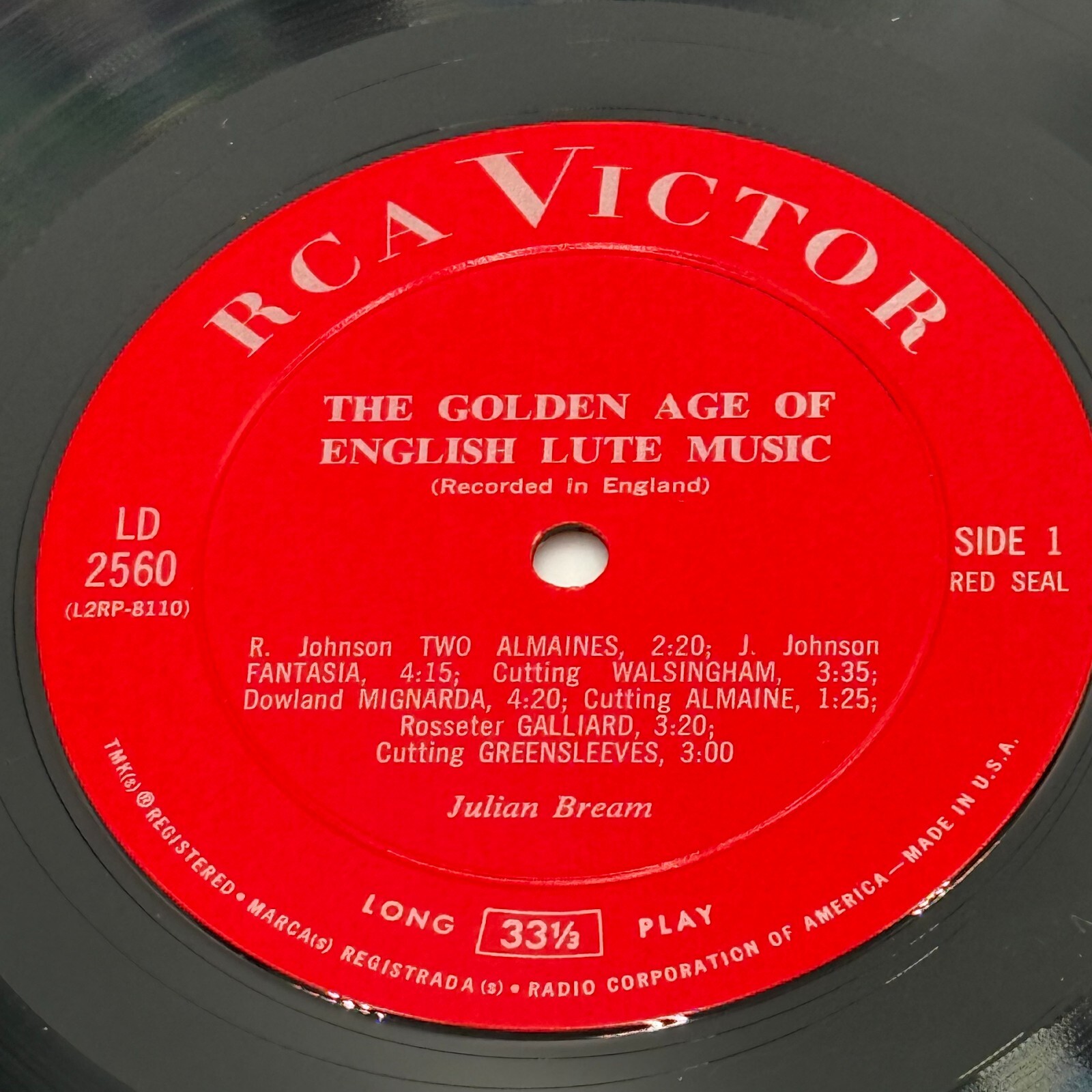 Experience the enchanting Golden Age of English Lute Music with Julian Bream's RCA Living Stereo LP, catalog number LDS2560.