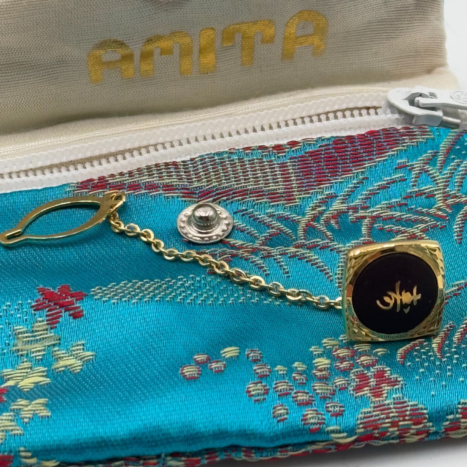 Elevate your attire with the AMITA Japanese Damascene Longevity Golden Kanji Chain Tie Tack, an emblem of sophistication for any occasion. The tie tack features a radiant gold finish that gracefully adorns your necktie, adding a touch of timeless elegance. The unisex design makes it a versatile accessory for any adult looking to enhance their professional or formal look.