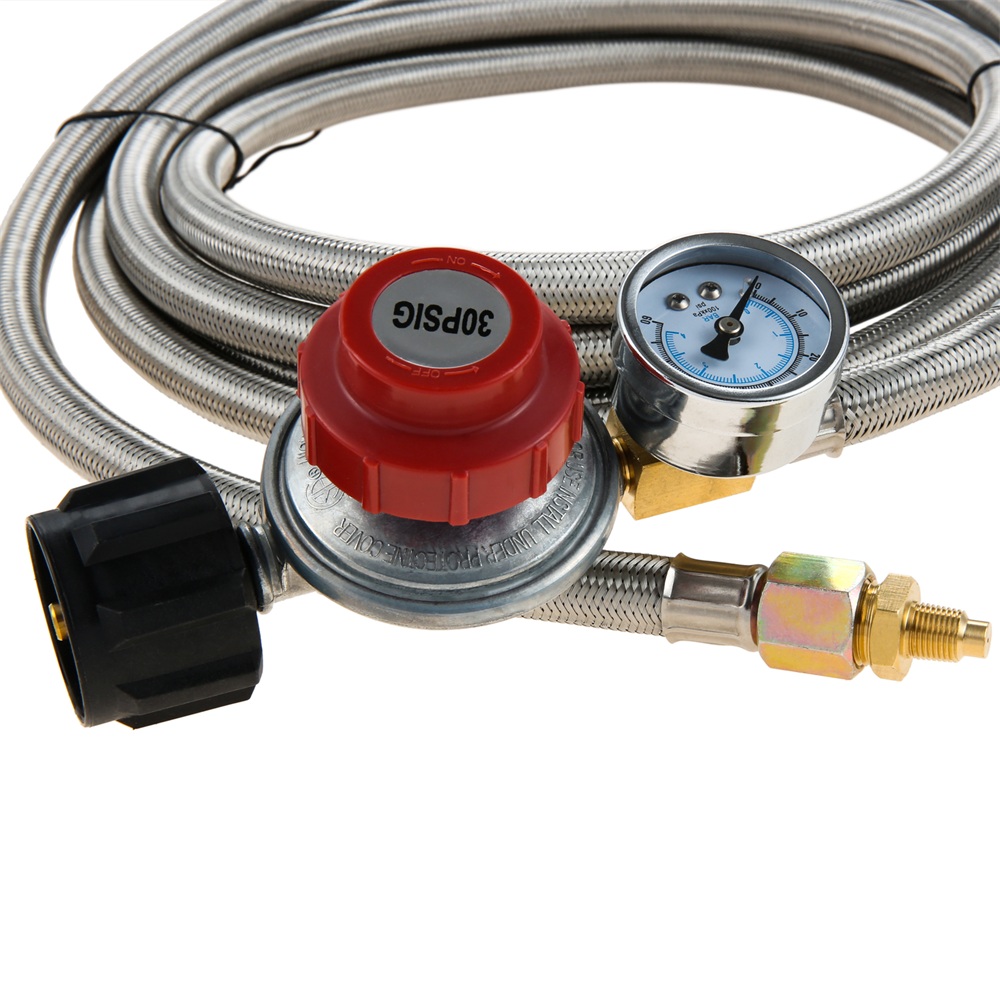 12 ft Propane Hose & Regulator High Pressure 0-30PSI w/ Gauge For Pipe Fitting