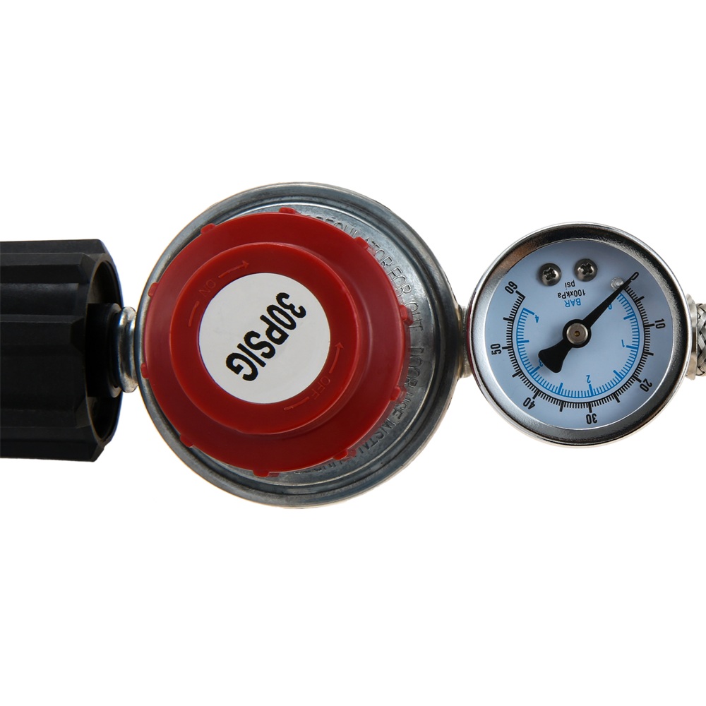 Specifications: 1, Use Gas One’s built-in PRESSURE GAUGE to determine and regulate your propane PSI. Measuring from 0-60 psi (as well as 1-4 100xKPA), Gas One’s Pressure Gauge lets users control their heat with a precise level of accuracy.