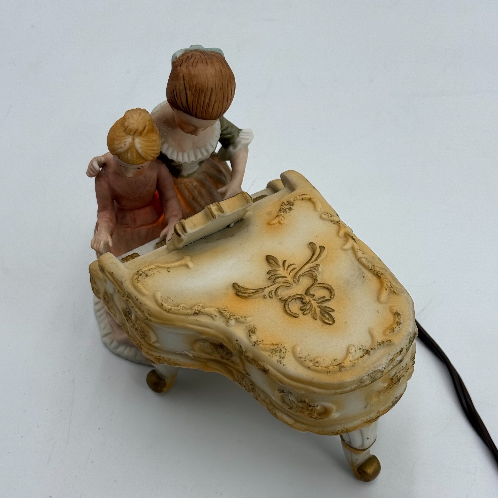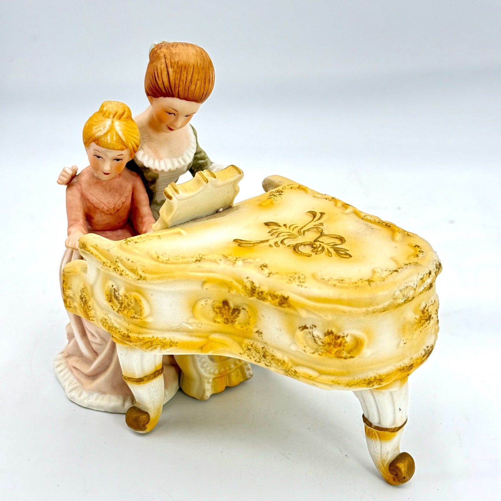 Elevate your space with a touch of nostalgia and charm with the Vintage Lenwile Ardalt Woman Teaching Child Piano Figurine. This ceramic art piece, featuring a delightful mother-and-child motif, is a testament to the timeless allure of Art Deco styling. Its multicolored palette and all-over pattern create an eye-catching display that's sure to spark conversation on any occasion.