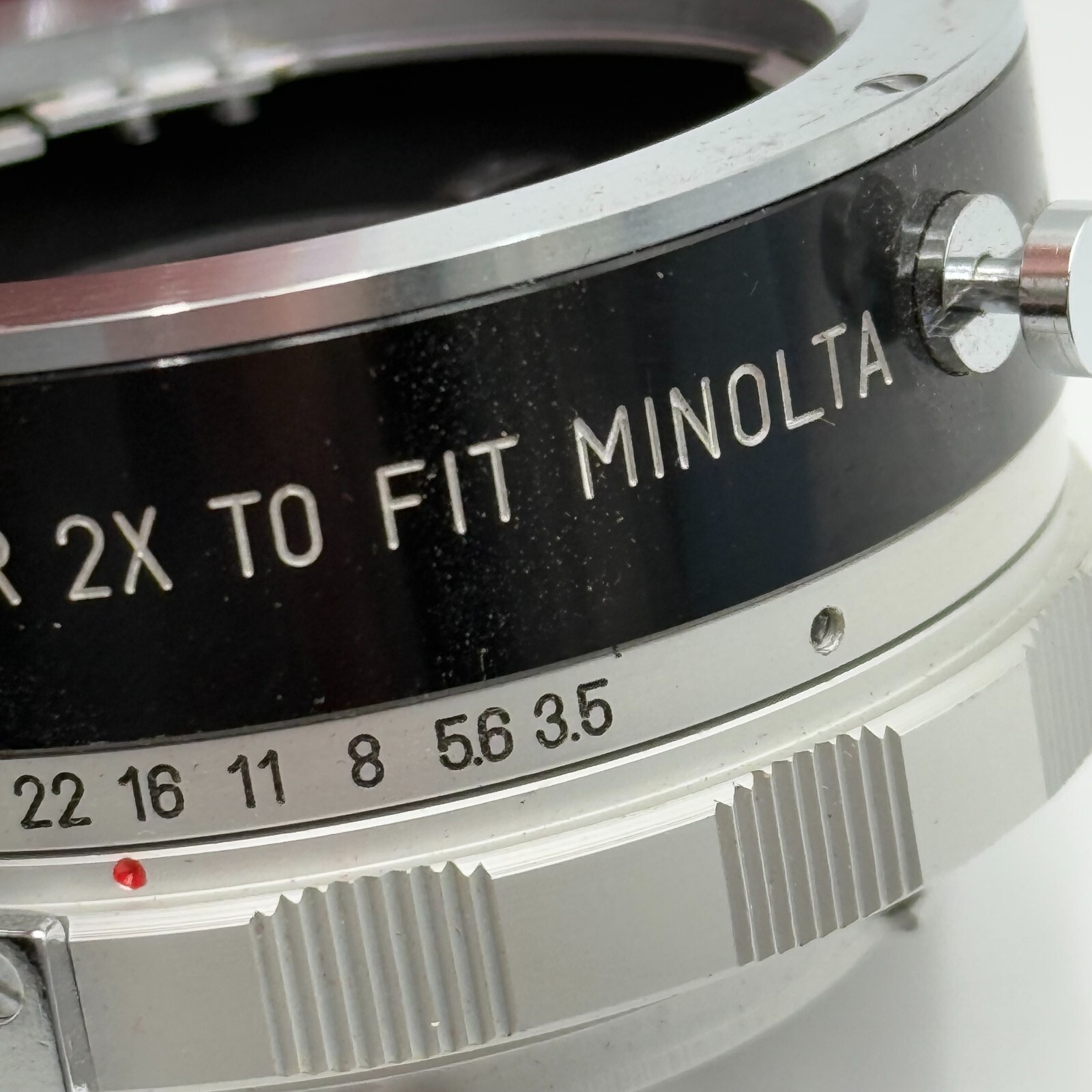 Enhance your photographic experience with the Vintage Soligor Auto Tele Converter 2x, crafted specifically for Minolta lenses. This essential add-on is a testament to the precision and quality that Soligor is known for, allowing you to double the focal length of your existing lens with auto focus convenience.