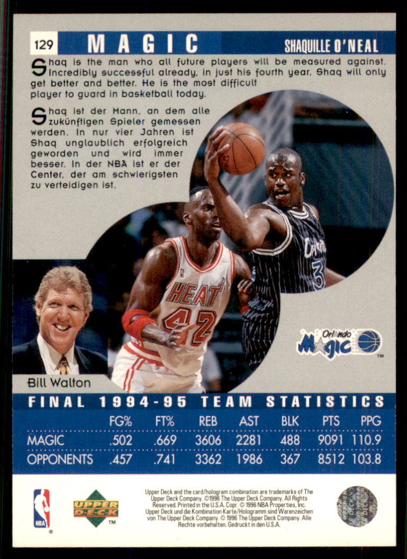 1995-96 Collector's Choice #129 Shaquille O'Neal Orlando Magic