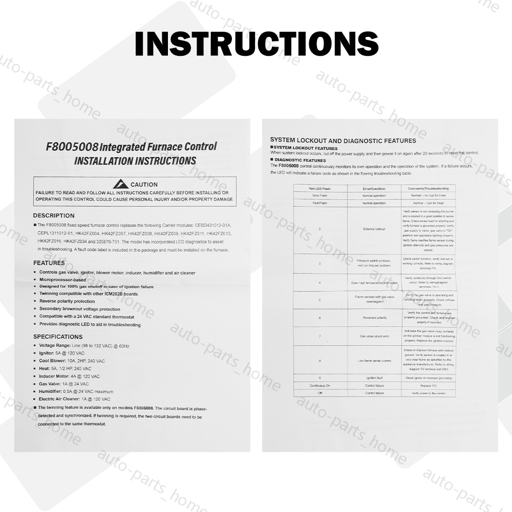 The F8005008 fixed speed fumace control replaces the following Carrier modules: