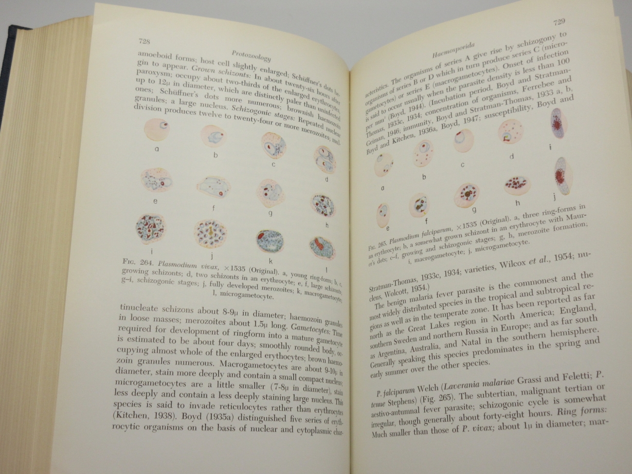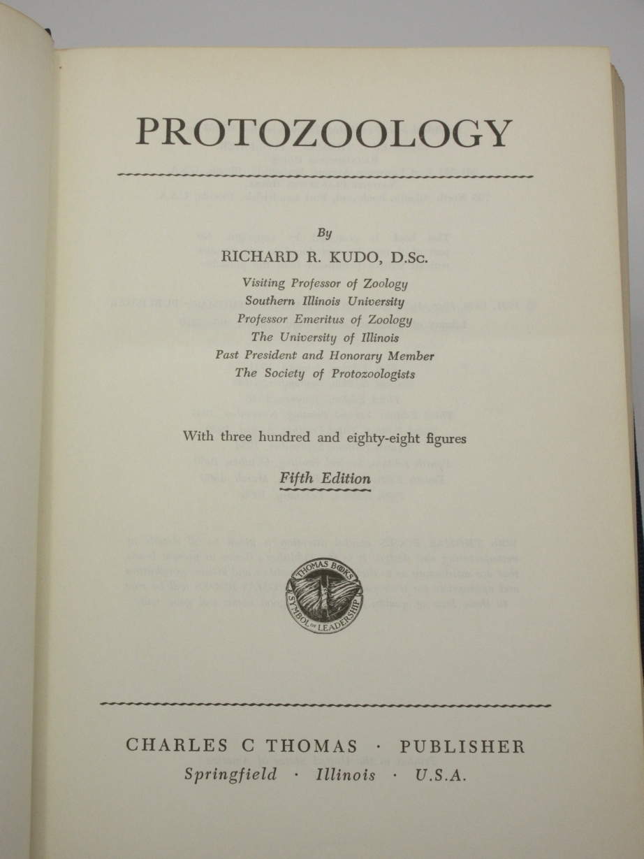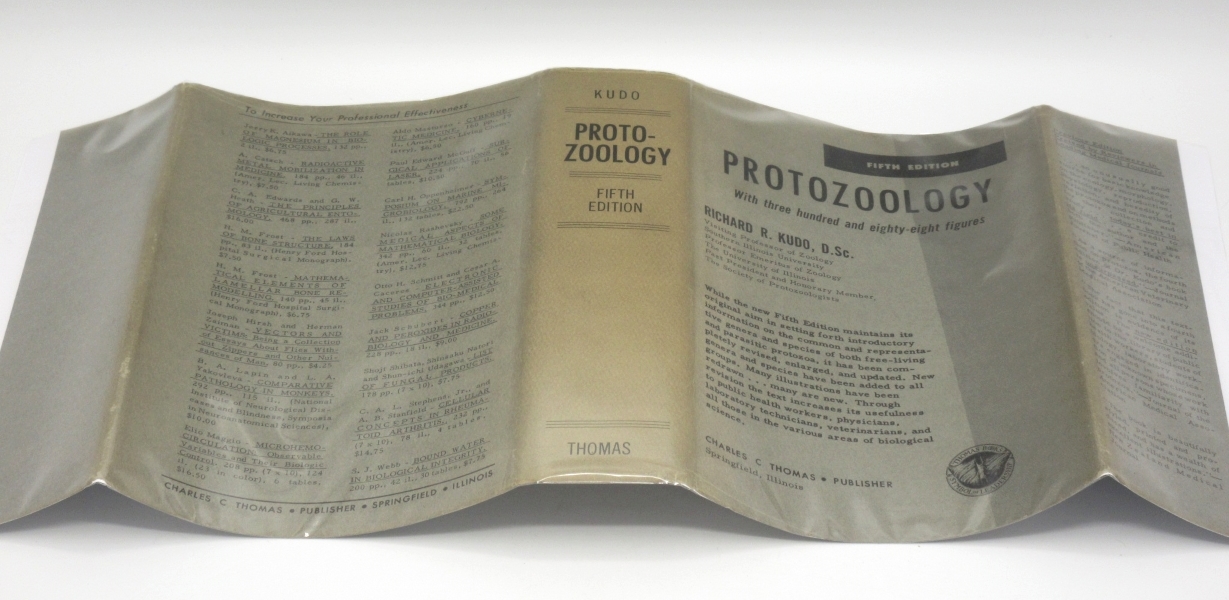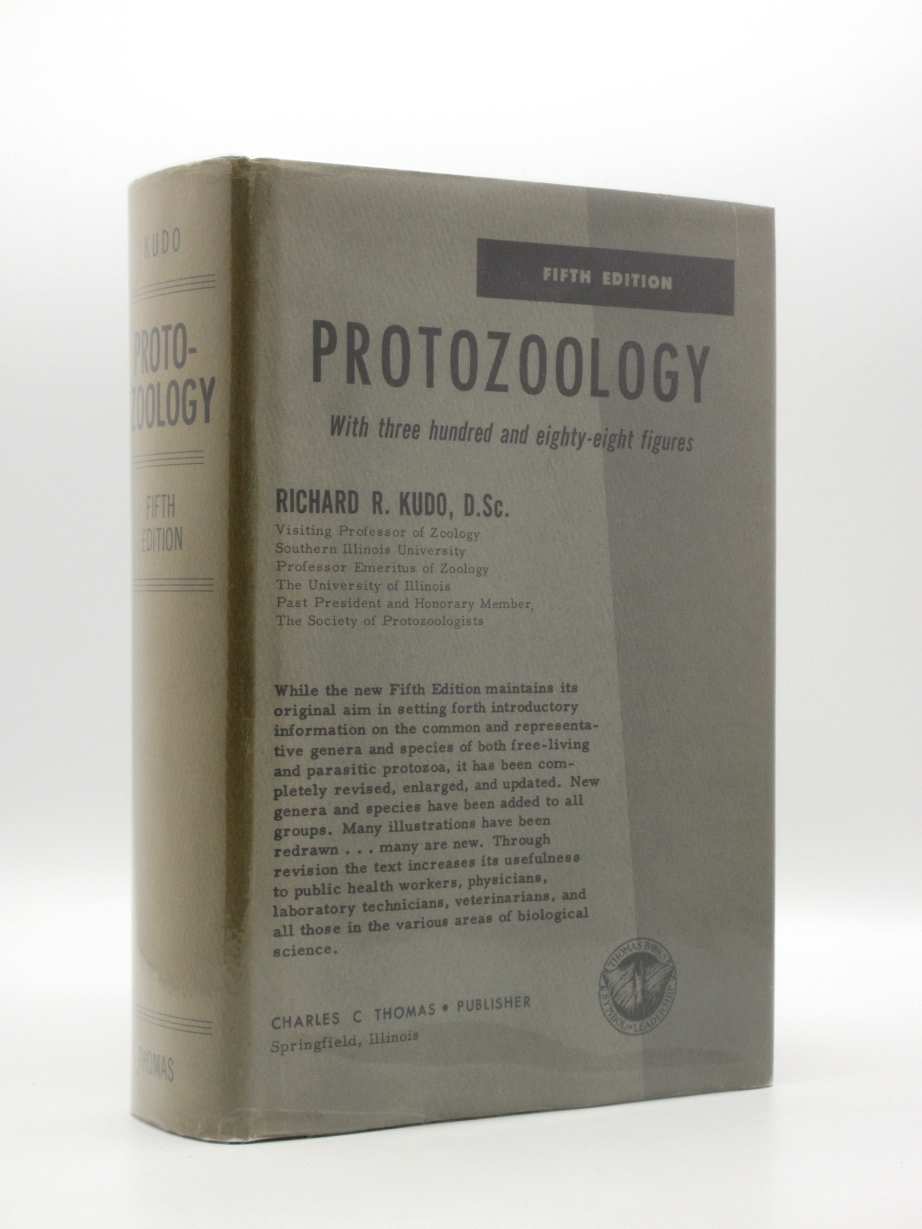 Protozoology By Richard R. Kudo Springfield, USA: Approx Size: 6.5 x 9.25 inches (16 x 23.5 cms) Hardback. xi, 1174 printed pages Dust Jacket: Browning to spine. Slight wear to edges, crease to upper edge of rear cover. Preserved in a removable jacket protector. Overall Condition is Very Good Book: Blue cloth binding. Light browning to page edges. Very clean text throughout. Overall Condition is Very Good There are many more rare and collectable books in our eBay shop, all at very reasonable prices Why not take a look... HERE Keyword SearchTerms: Protozoa, Parasitic |