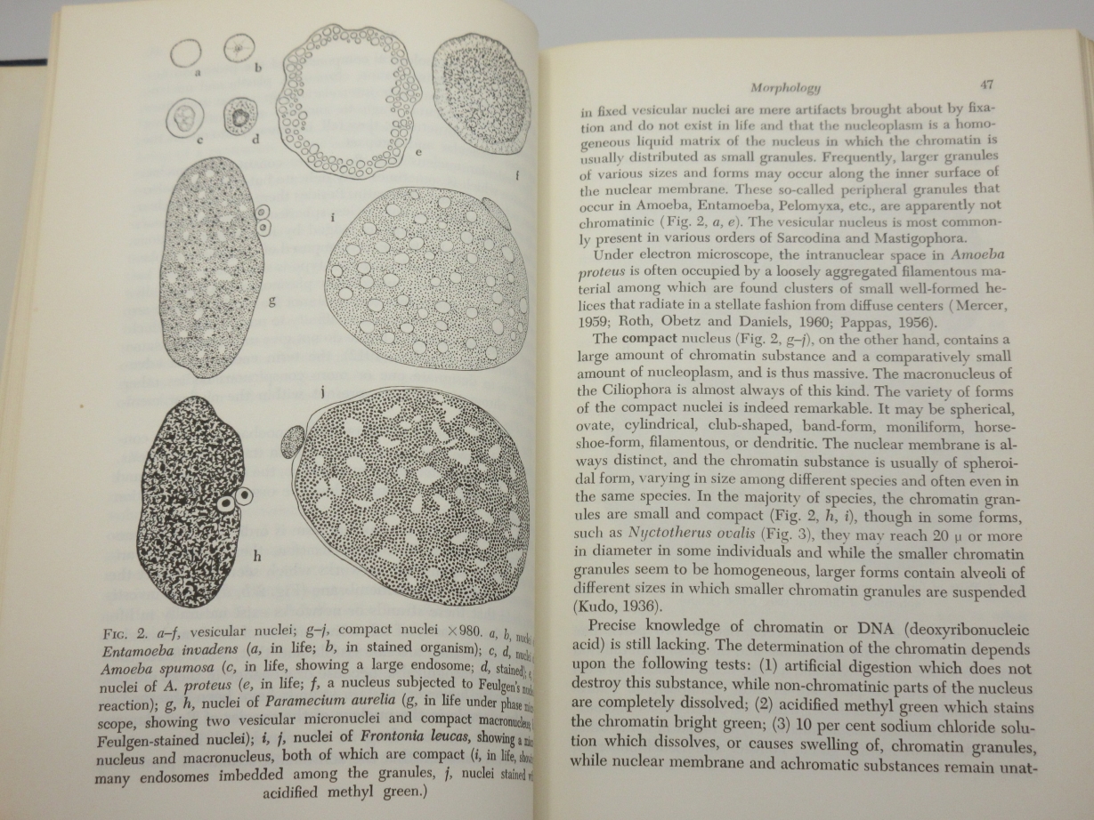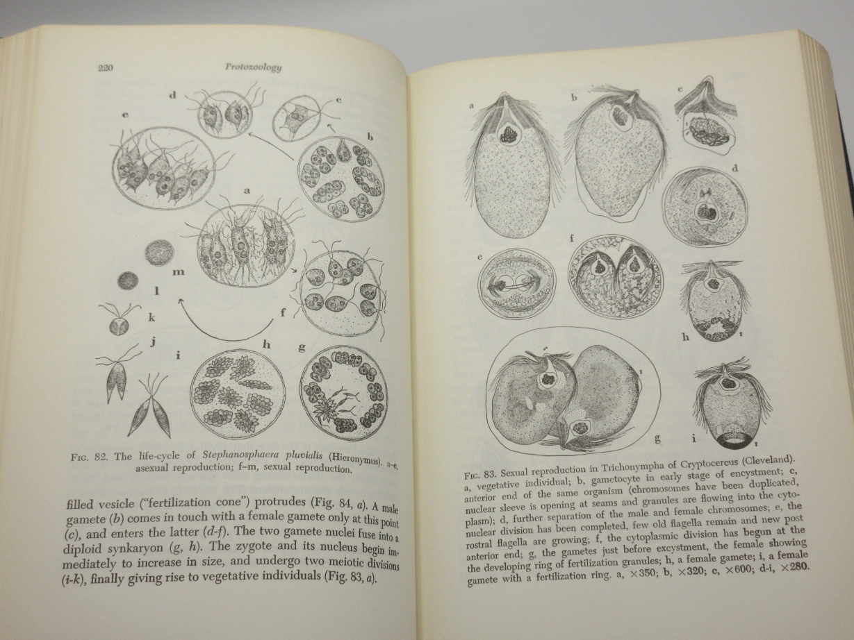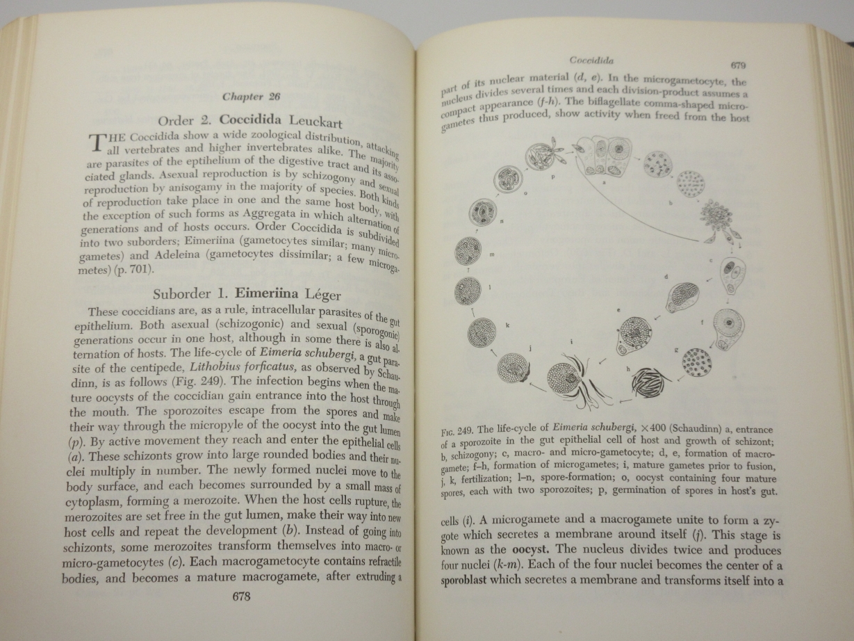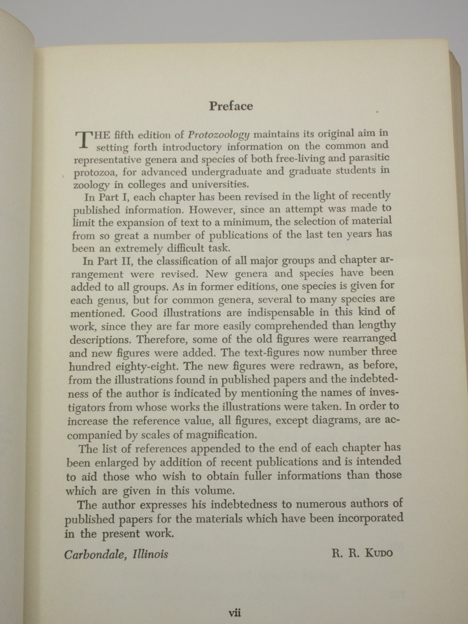 Protozoology By Richard R. Kudo Springfield, USA: Approx Size: 6.5 x 9.25 inches (16 x 23.5 cms) Hardback. xi, 1174 printed pages Dust Jacket: Browning to spine. Slight wear to edges, crease to upper edge of rear cover. Preserved in a removable jacket protector. Overall Condition is Very Good Book: Blue cloth binding. Light browning to page edges. Very clean text throughout. Overall Condition is Very Good There are many more rare and collectable books in our eBay shop, all at very reasonable prices Why not take a look... HERE Keyword SearchTerms: Protozoa, Parasitic |