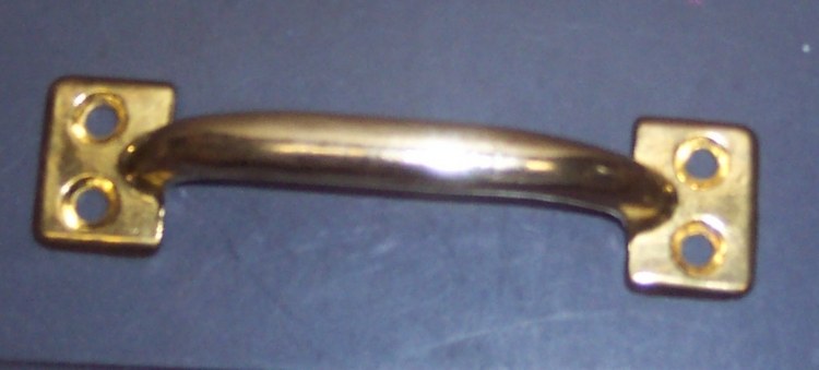 These are Seven (7) New Cast Brass, Polished Bright Finish Sash Handles. Manufactured by The H. B. Ives Co. Comes with many brass screws.