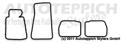 Die Fußmatten werden für Sie passgenau in Wächtersbach/Hessen gefertigt und mit unserem Versandpartner DHL zu Ihnen versendet. Es handelt sich hierbei nicht um Lagerware - alles wird für Sie unter Berücksichtigung Ihrer Farbwünsche für Sie gefertigt.