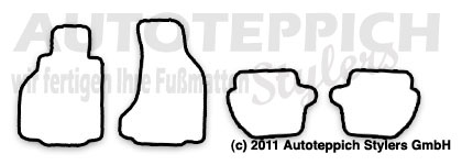 Die Fußmatten werden für Sie passgenau in Wächtersbach/Hessen gefertigt und mit unserem Versandpartner DHL zu Ihnen versendet. Es handelt sich hierbei nicht um Lagerware - alles wird für Sie unter Berücksichtigung Ihrer Farbwünsche für Sie gefertigt.