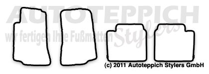Die Fußmatten werden für Sie passgenau in Wächtersbach/Hessen gefertigt und mit unserem Versandpartner DHL zu Ihnen versendet. Es handelt sich hierbei nicht um Lagerware - alles wird für Sie unter Berücksichtigung Ihrer Farbwünsche für Sie gefertigt.