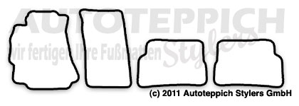 Die Fußmatten werden für Sie passgenau in Wächtersbach/Hessen gefertigt und mit unserem Versandpartner DHL zu Ihnen versendet. Es handelt sich hierbei nicht um Lagerware - alles wird für Sie unter Berücksichtigung Ihrer Farbwünsche für Sie gefertigt.