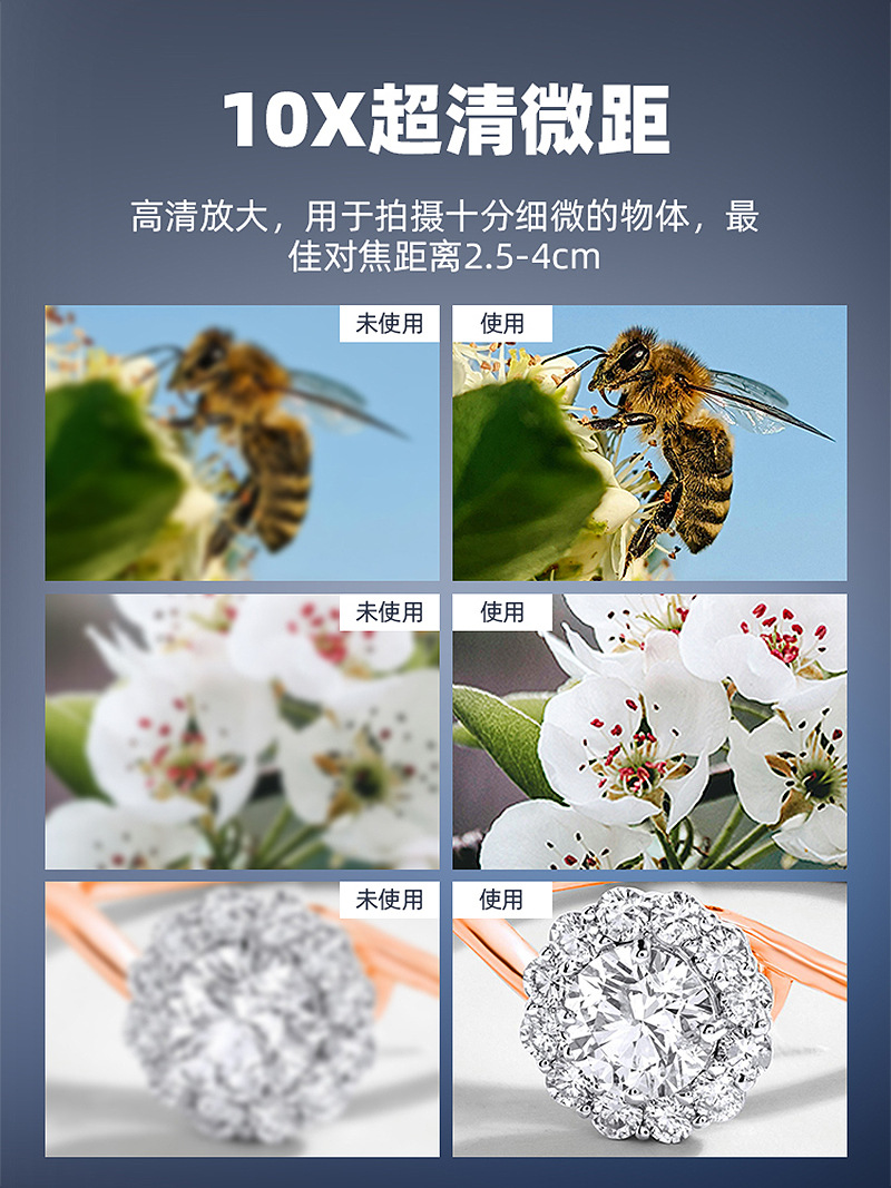 1. Supports 10x ultra clear macro shooting, capable of capturing subtle objects with an optimal focus distance of 2.5-4cm;