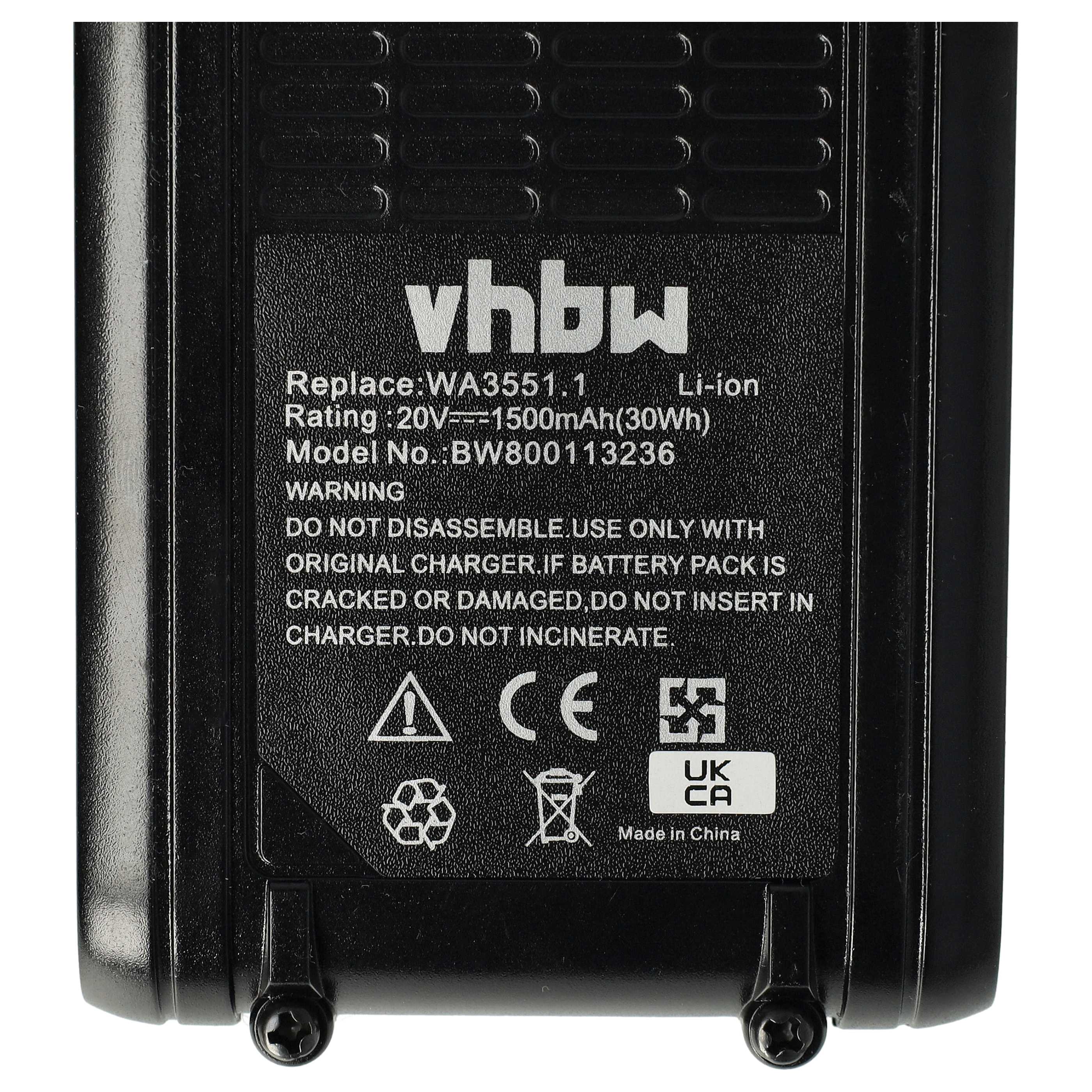 vhbw Replacement battery for Worx Landroid M500 WR141E, M500 Plus, M700, M700 2.0 2022 power tool / 20 V Li-Ion batteries; 1500 mAh