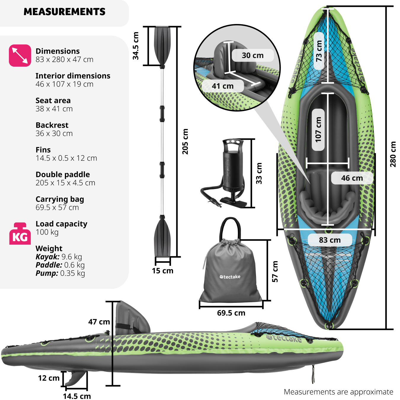 - Kayak weight: approx. 9.6 kg