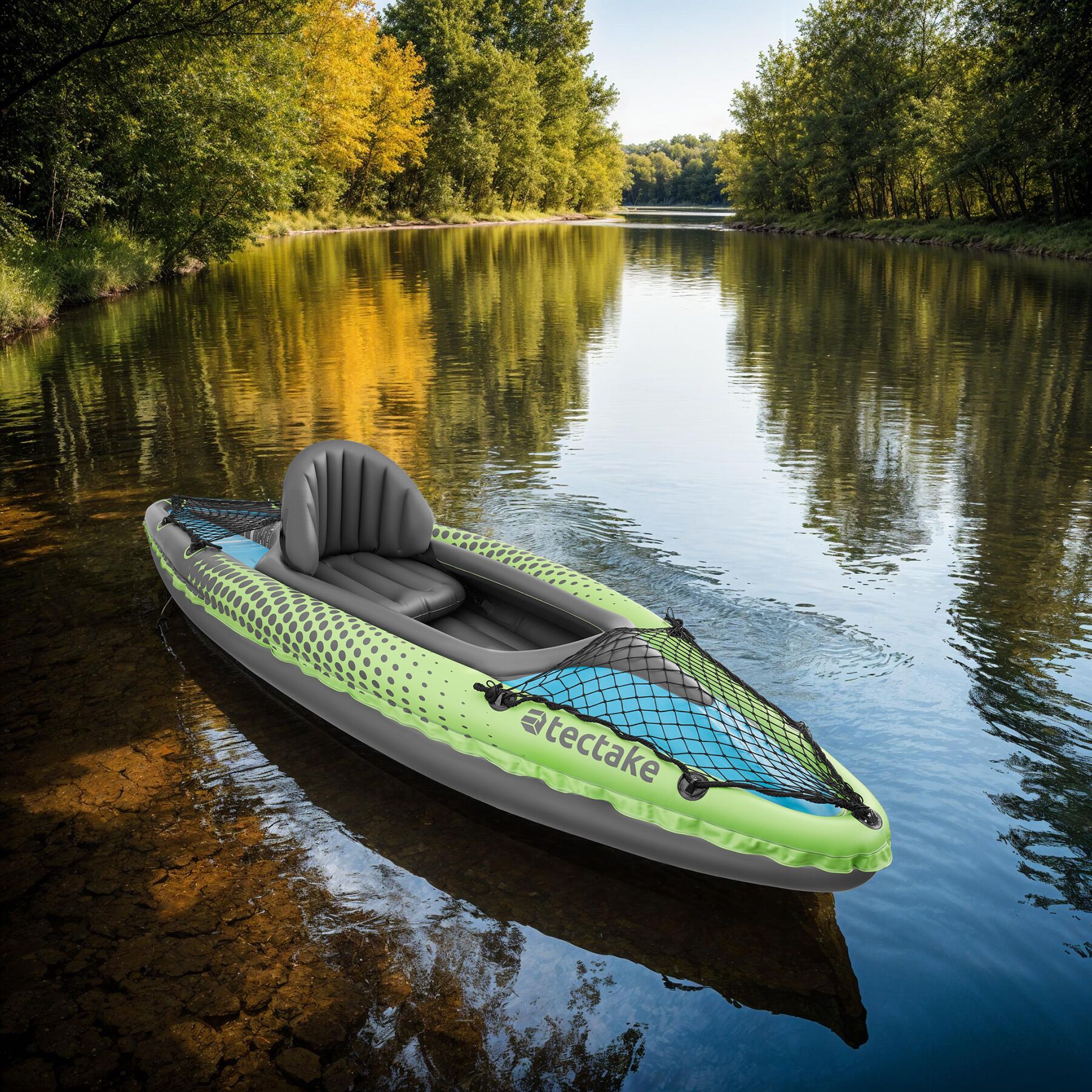 Discover the ultimate adventure on the water with the inflatable single seater kayak Liberty by tectake. Made from sturdy PVC material, the kayak offers you high stability and durability, allowing you to master challenging waterways with ease.