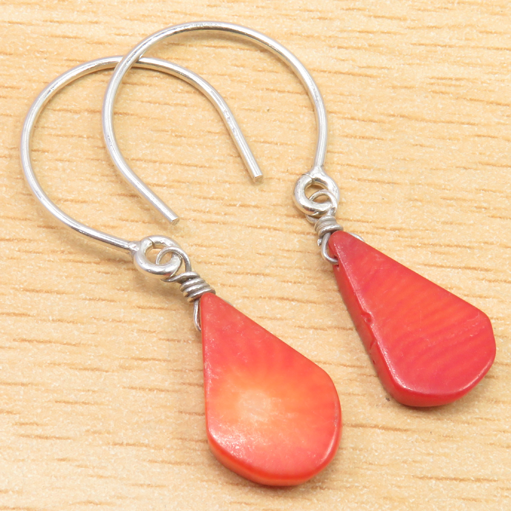 925 Sterling Silver CORAL Earrings 1.4" Exceptional Handmade Jewelry Collection