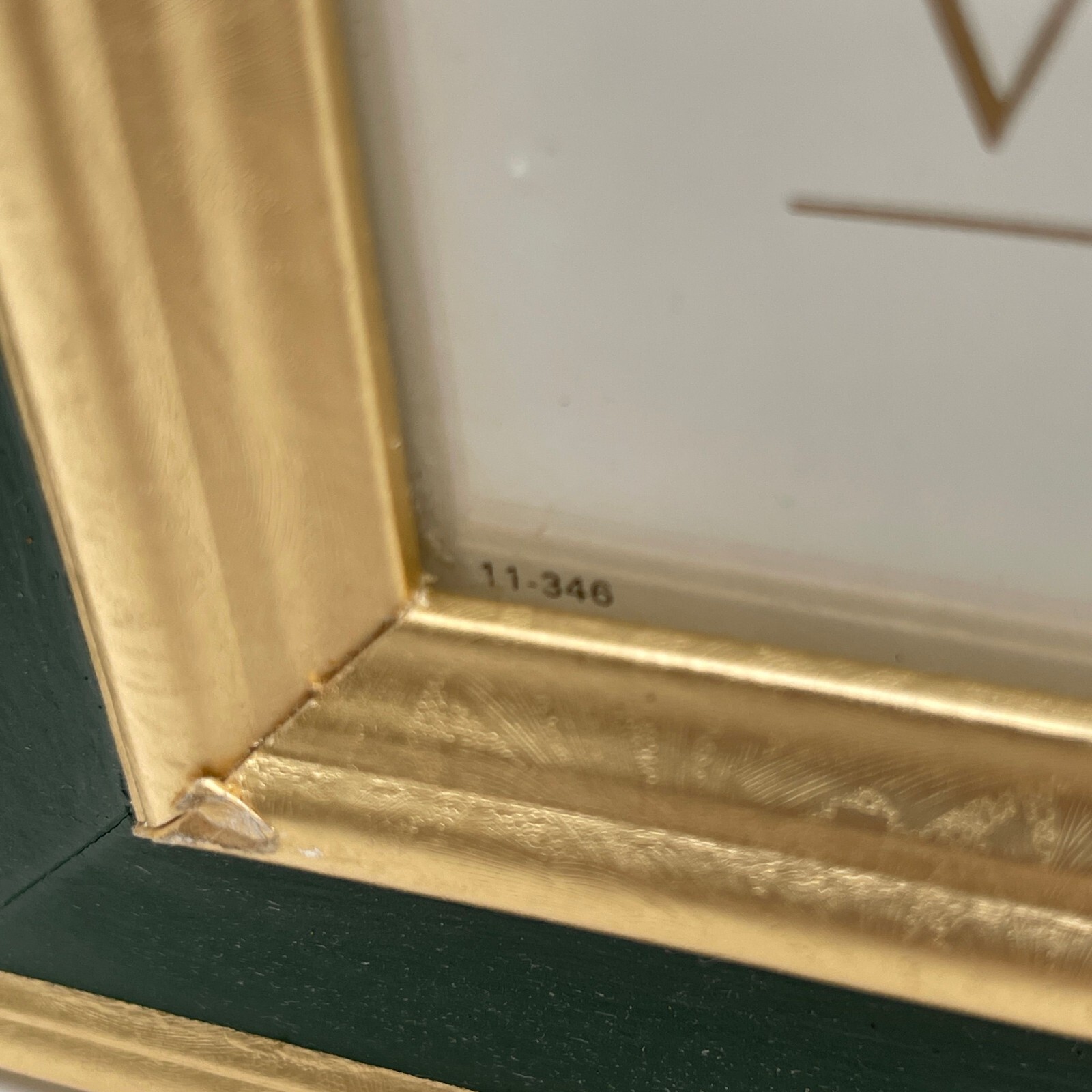 It is framed and made of wood, glass, and paper, originating from California, USA.
