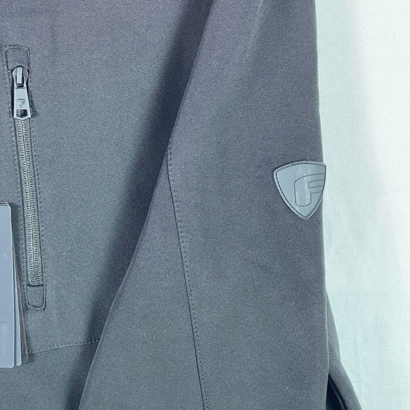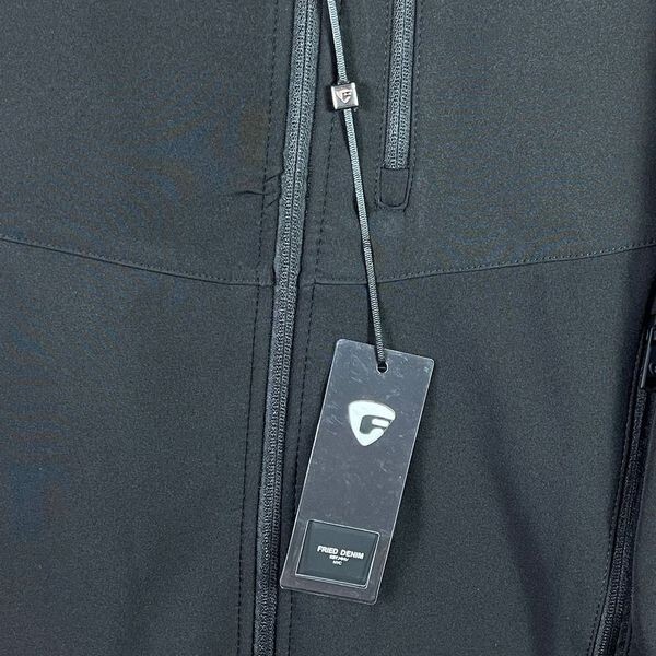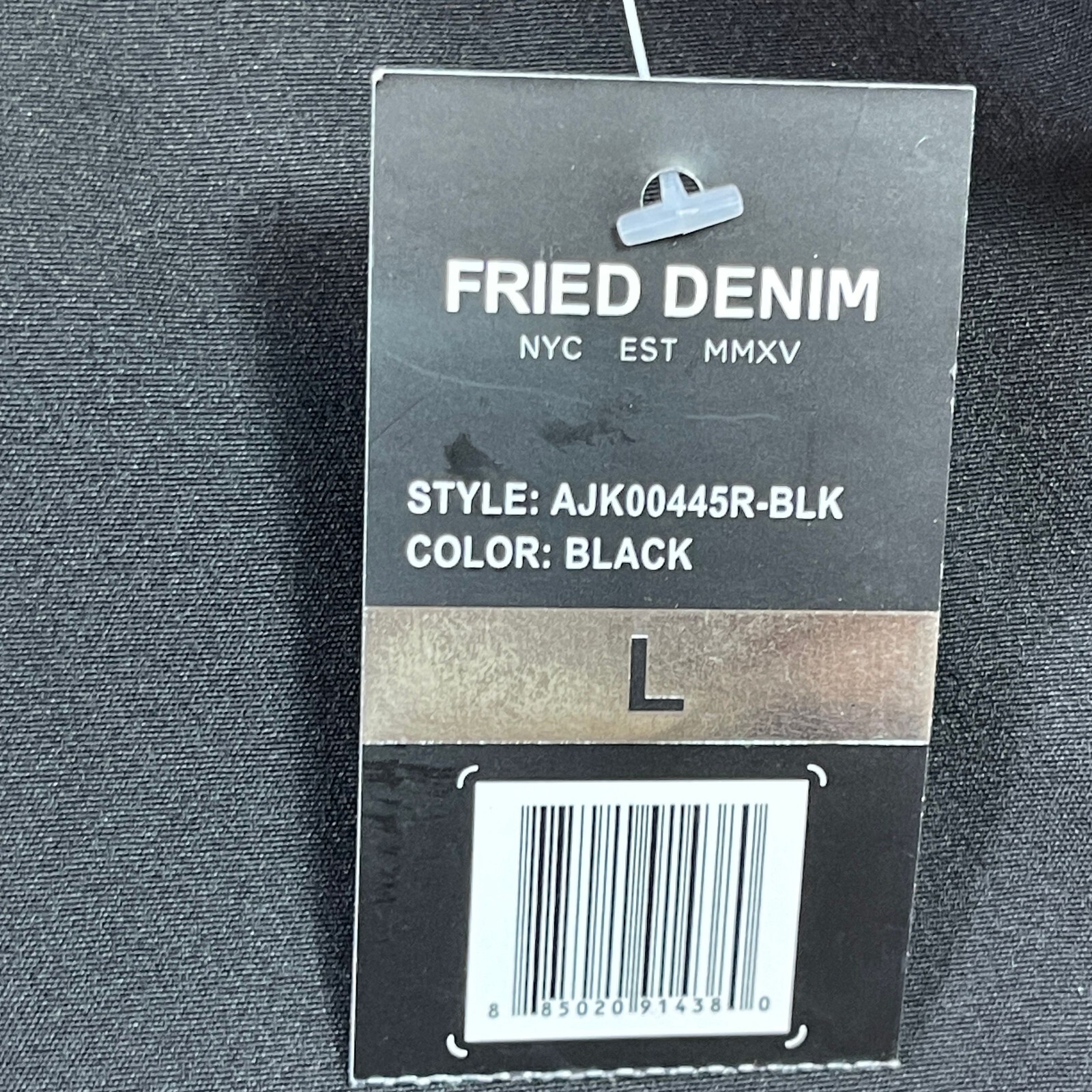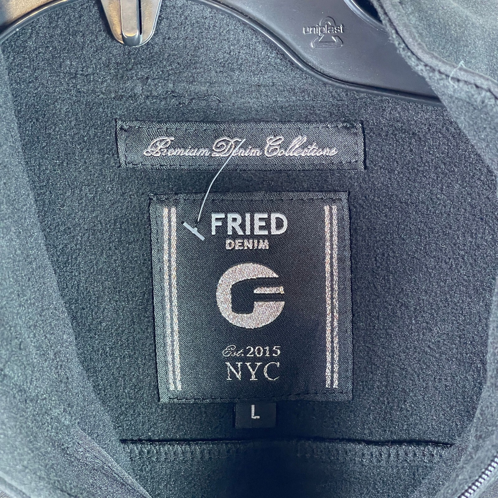 This is a Fried Denim NYC men's jacket in size Large, featuring a premium black fleece outer shell with a solid pattern.