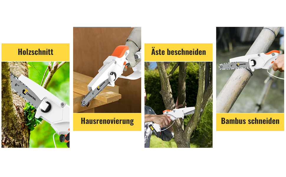Effiziente Schneidleistung: Die verbesserte Mini-Kettensäge garantiert reibungslose und präzise Schnitte. Mit einer scharfen Kette aus hochfestem Material ist sie ideal für alle Holzarbeiten, von einfachem Beschneiden bis hin zu anspruchsvollen Schneidaufgaben.