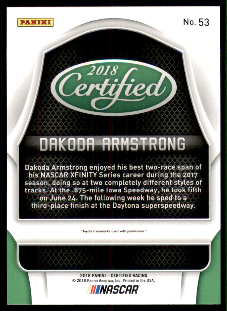 2018 Panini Certified Racing #53 Dakoda Armstrong