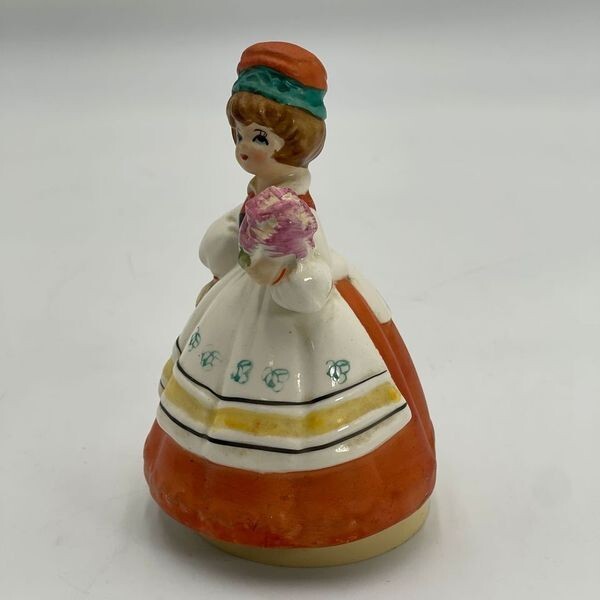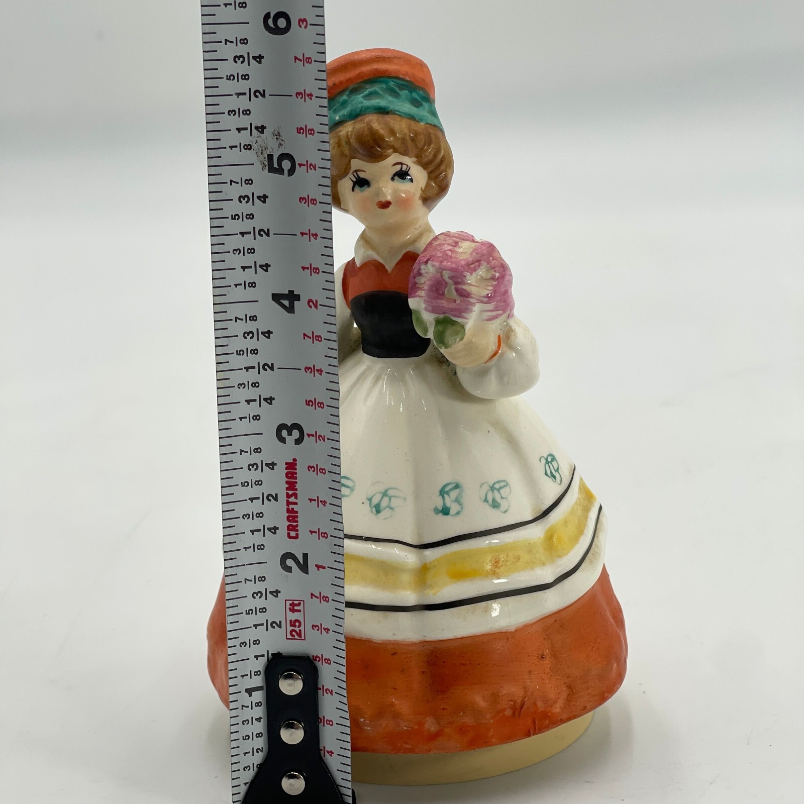 A vintage Sankyo Japanese ceramic figurine with a music box, measuring approximately 6 inches.