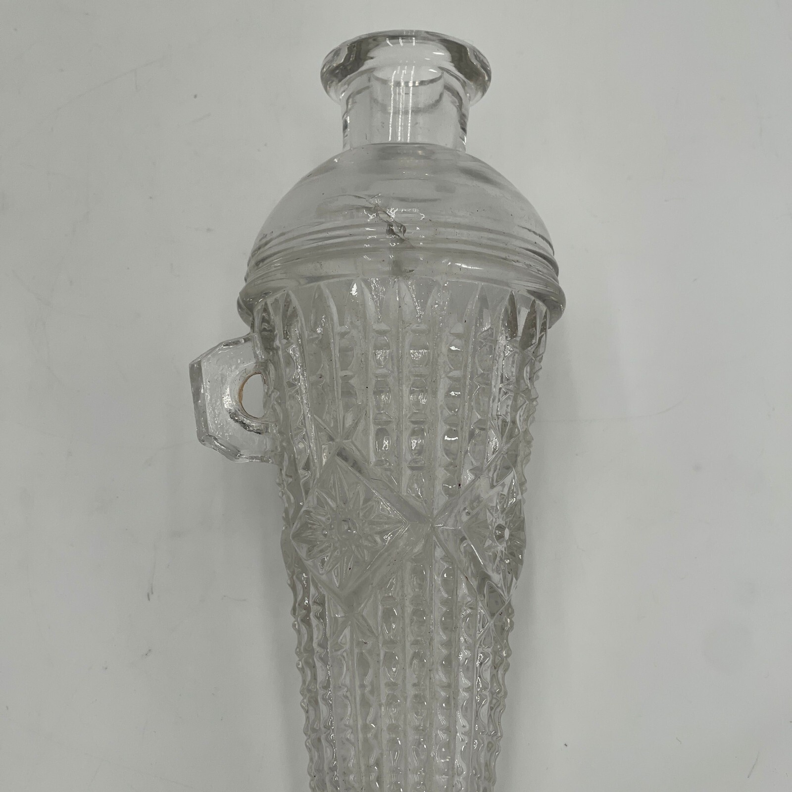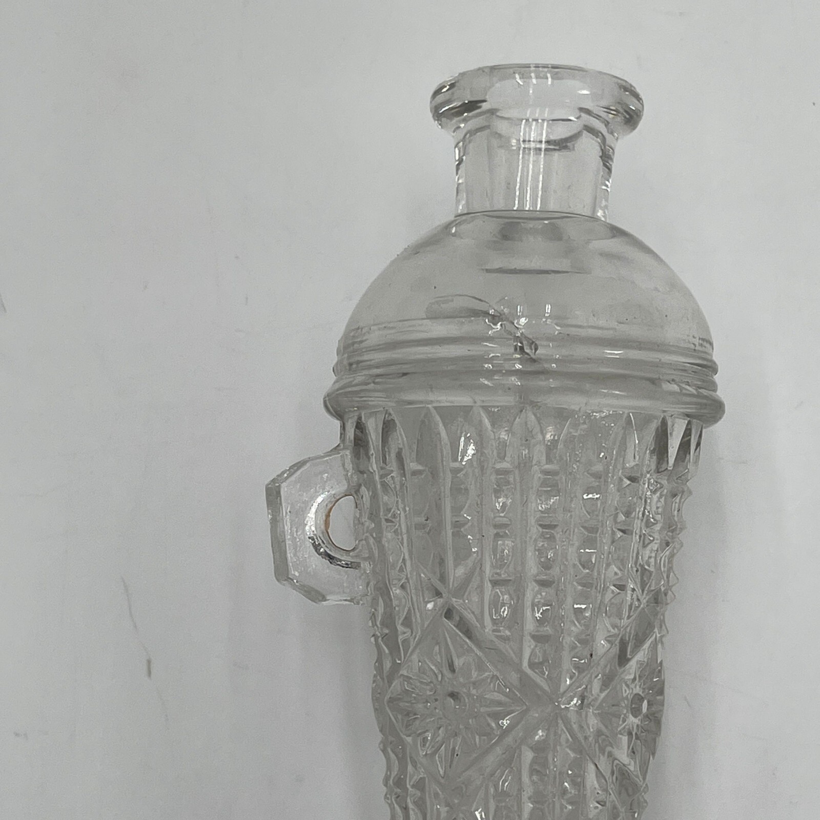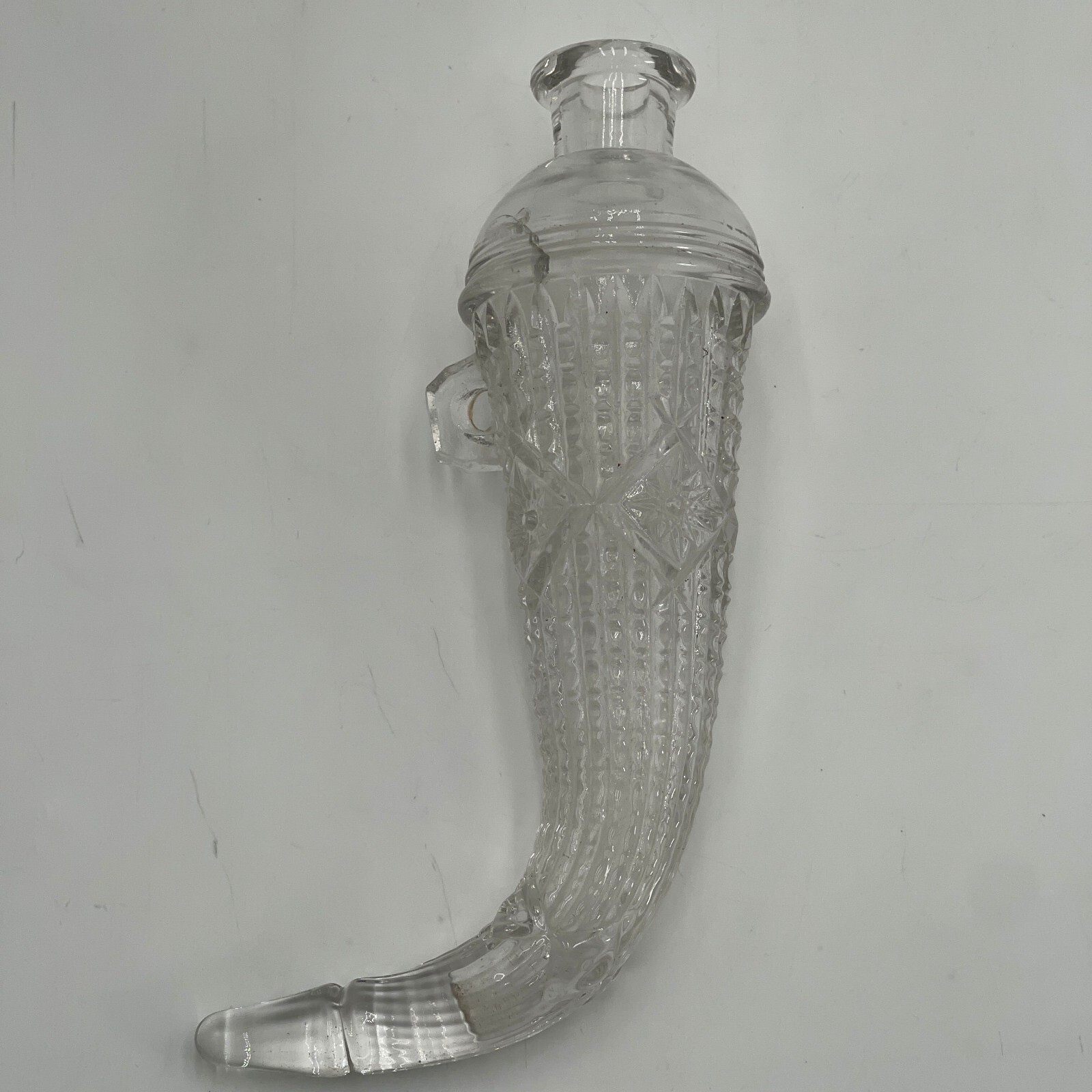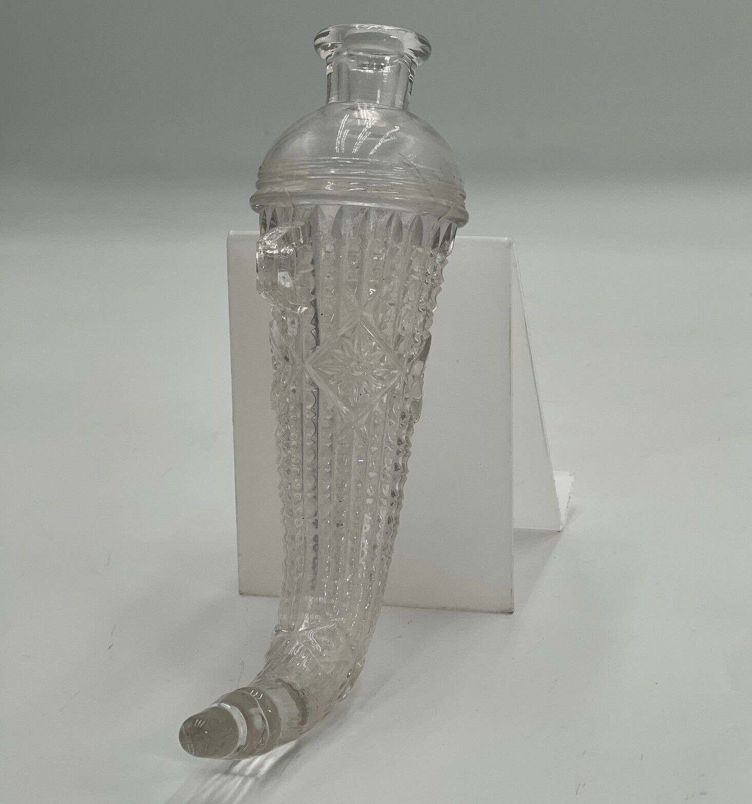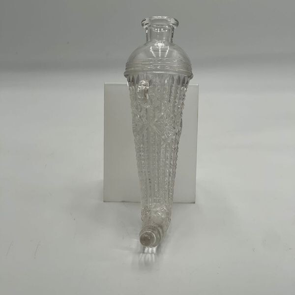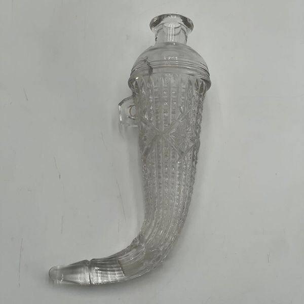 the The clear glass pieces feature cut glass designs, embodying Mid-Century Modernism style. With a horn of plenty shape and a single hole, they are perfect for any occasion.