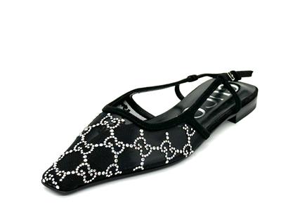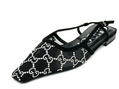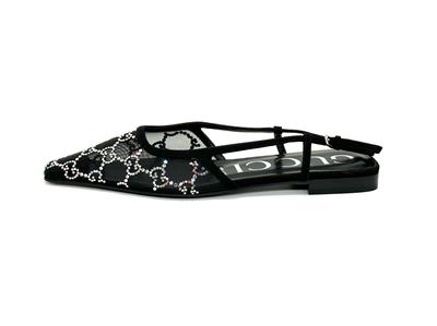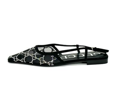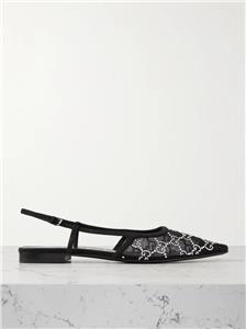 Gucci's 'Demi' ballet flats are made from sheer mesh and have tonal suede trims and sparkling crystals arranged in the shape of the label's monogram.