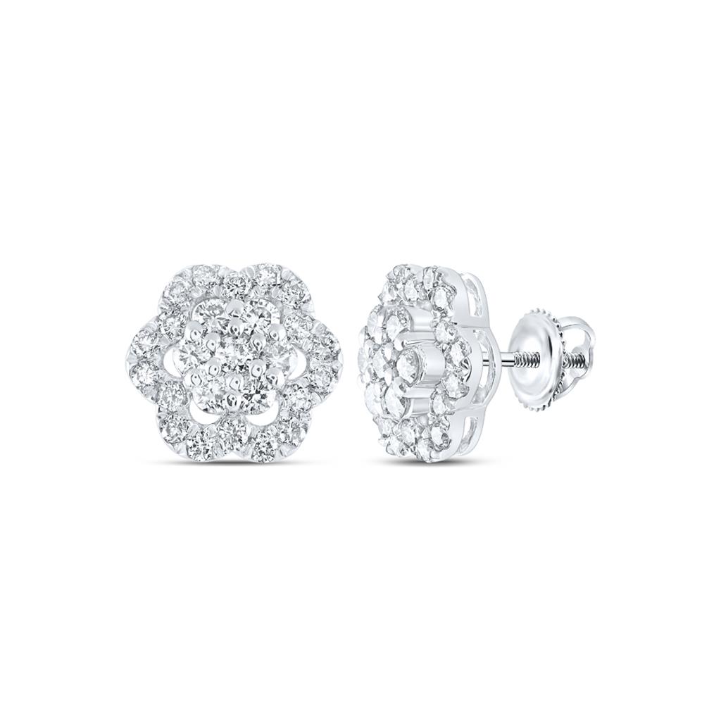 (2.77 gr. of 10k White Gold | Total Carat Weight: 1 ct. t.w. of White Diamonds | Length: 8mm | Width: 8mm | Clarity: I1 - I2 | Color: I - J | Women Genuine White Round Cut Diamond Flower Frame Statement Stud Earrings)