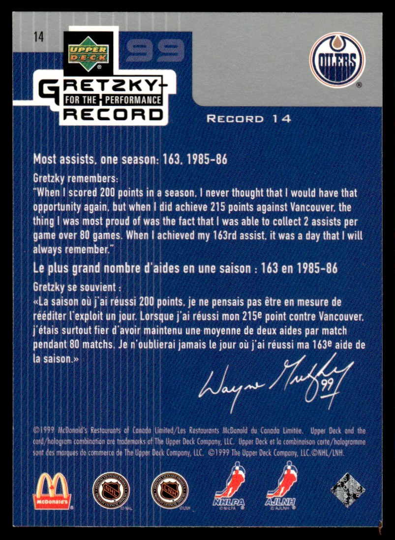 | 1999-00 McDonald's Upper Deck Gretzky Performance for the Record Wayne Gretzky |