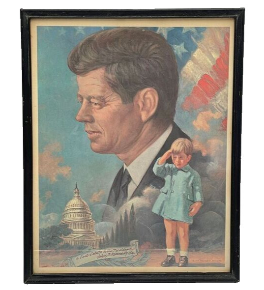The product is a framed 1964 original lithograph color print by Arthur P. Freeman titled "A Last Salute to the President."
