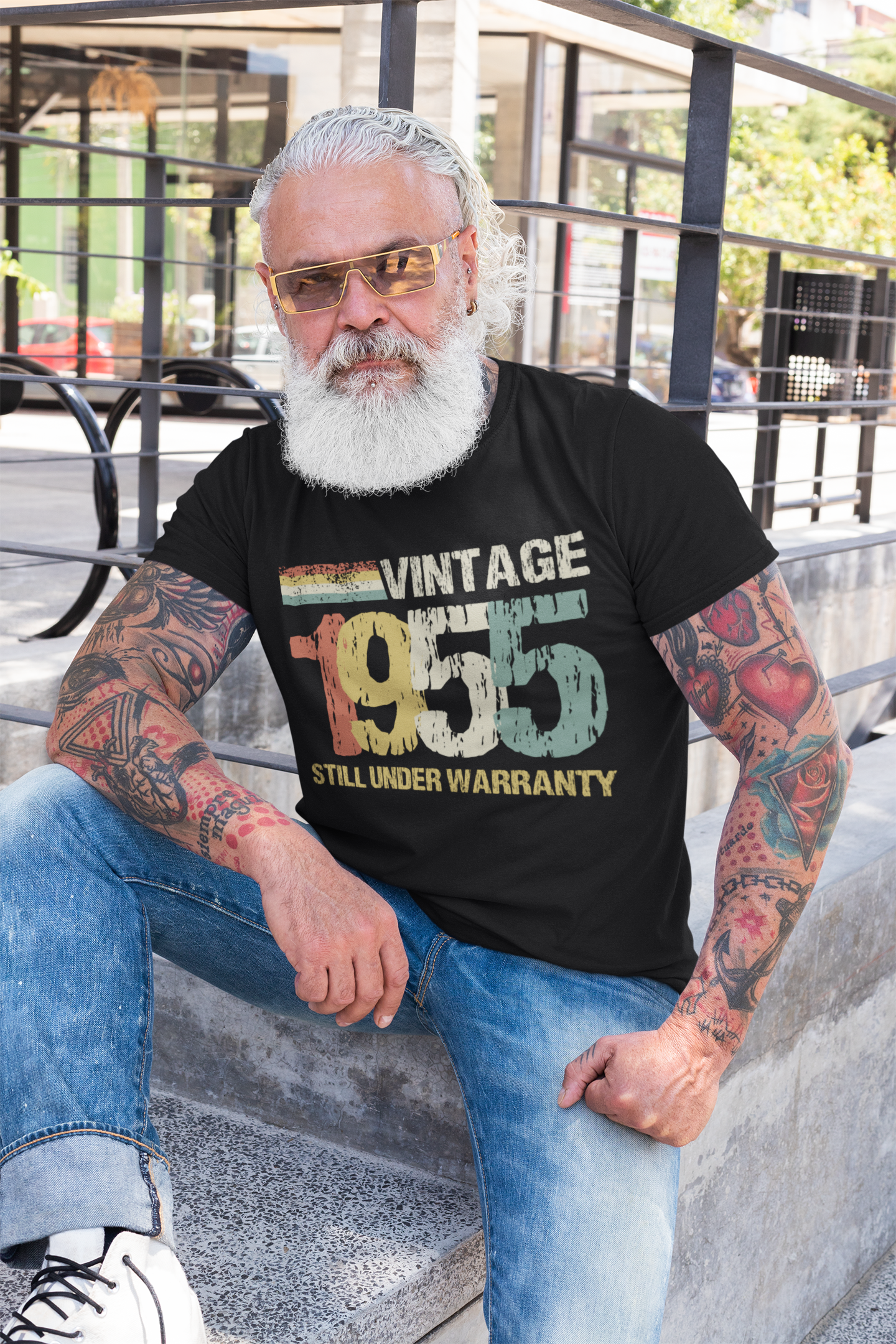 Celebrate his 70th birthday with the Mens Birthday T Shirt Born in 1955, featuring a funny vintage design printed in the UK – the perfect 70th birthday gift for him