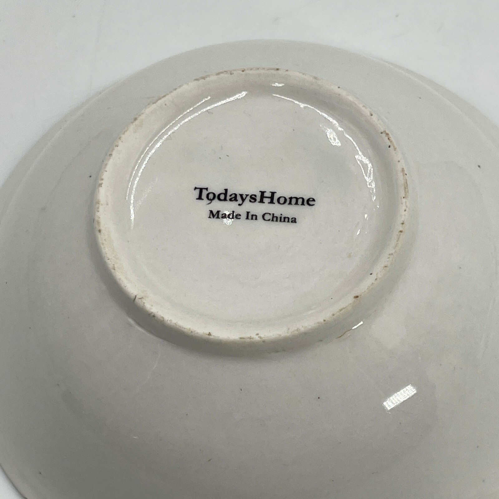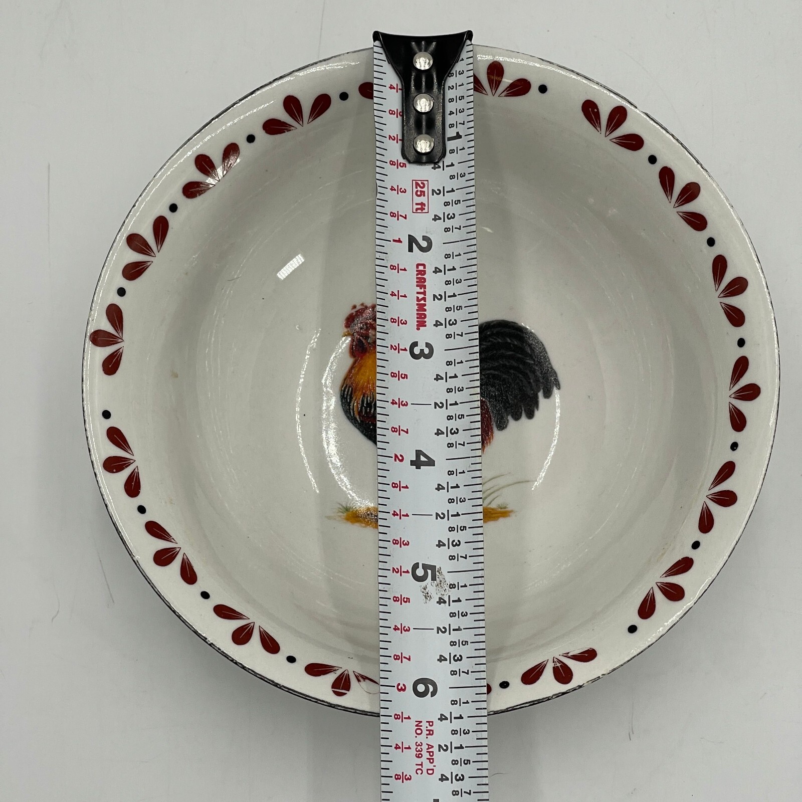 This vintage TodaysHome bowl features a round shape with a multicolor animal print pattern of birds, including a banty rooster.
