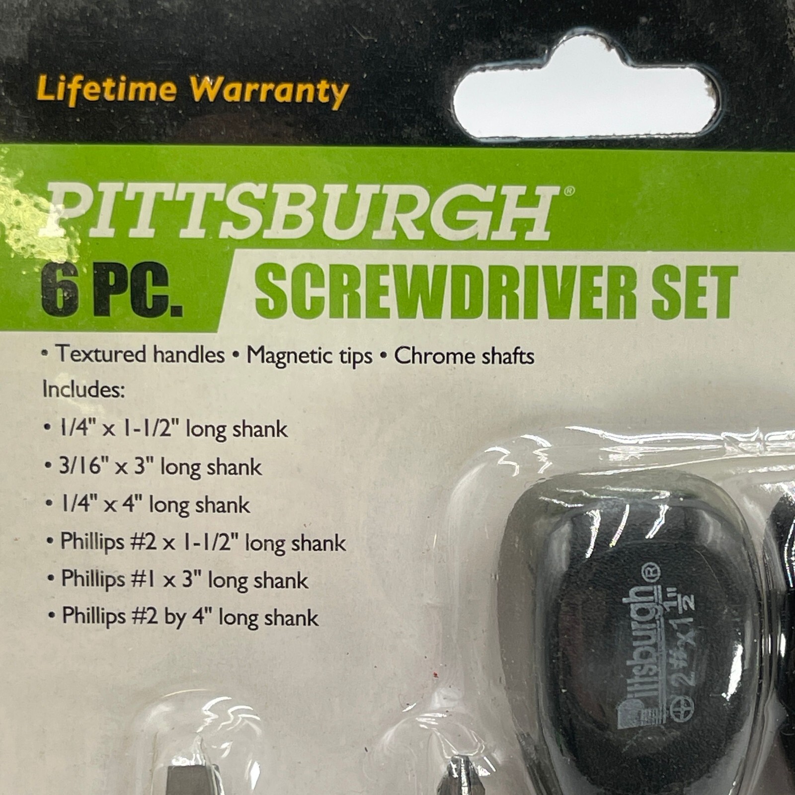 The Pittsburgh 6 PC. Black Screwdriver Set includes screwdrivers with textured handles and magnetic tips.