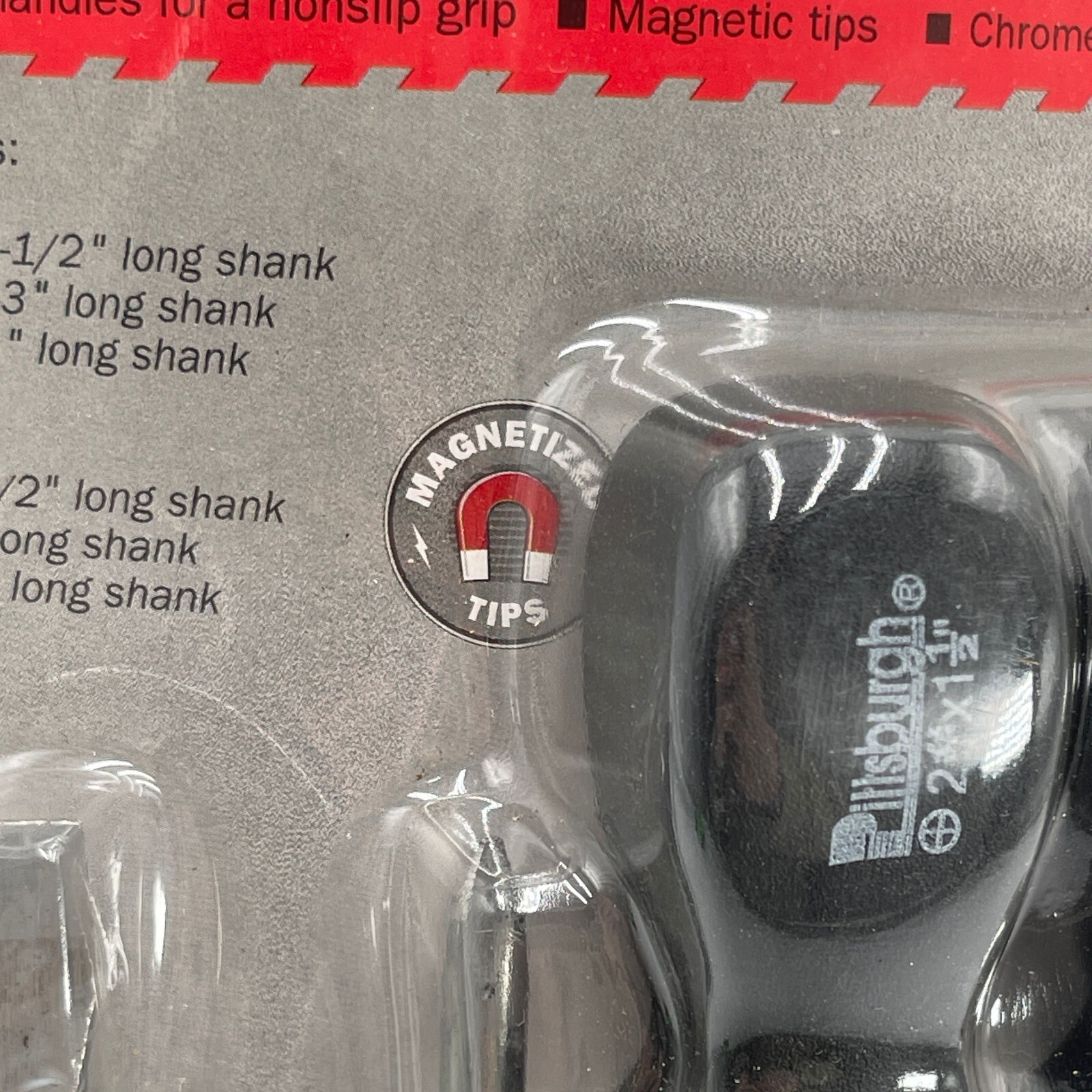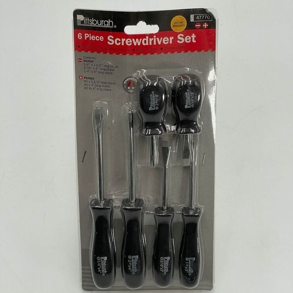 The Pittsburgh 6 PC. Black Screwdriver Set (Item 47770) includes 6 pieces of screwdrivers with magnetized tips.