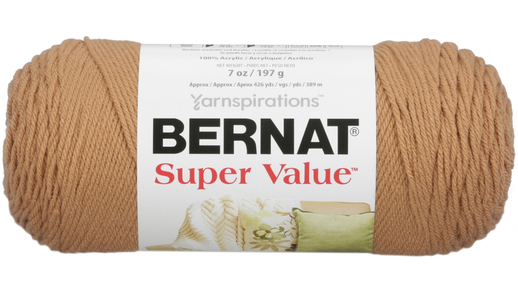 BERNAT-Super Value Solid Yarn. Knitting worsted weight is the most popular weight for knitting and Bernat has an extensive shade range in the super value yarns which happen to be easy to care for and long wearing as well. Weight category: 4, 100% Acrylic, 7oz/197g, 426yd/389m. Gauge: 18st x 24r = 4in/10cm on size 8/5mm knitting needles and H8/5mm crochet hook. Care: machine wash, tumble dry, do not bleach, do not iron, do not dry clean. Imported.