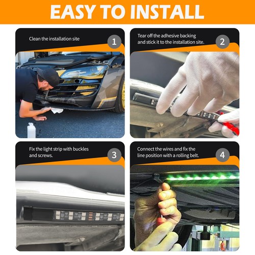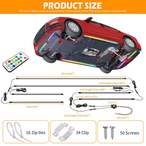 HIGH POWER DOUBLE ROW LED LIGHT STRIP - underglow light kit uses high-brightness SMD 5050 LED chips,with stronger brightness, more vivid colors, and more balanced and stable colors. It can enhance the appearance of the car at night and make your car more eye-catching.