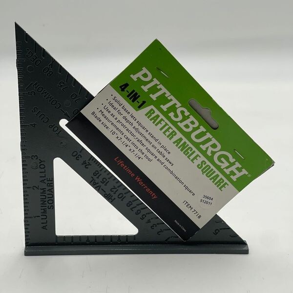 The Pittsburgh 4-In-1 Rafter Angle Square is a versatile tool designed for various carpentry tasks.