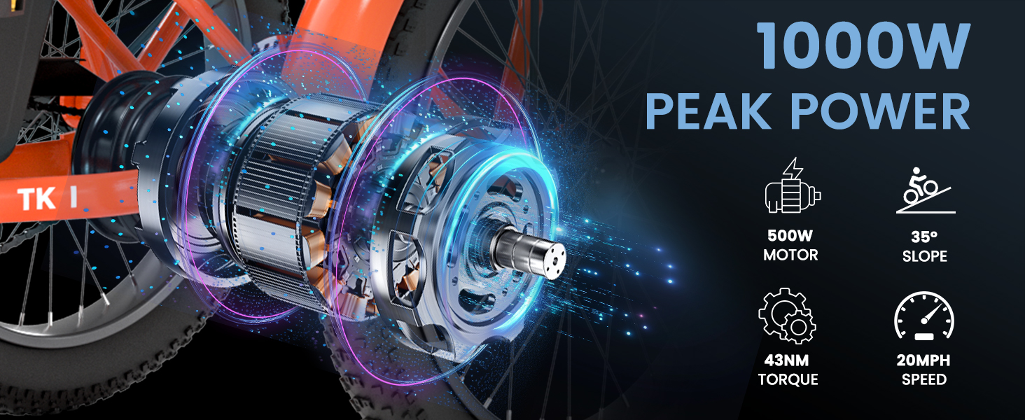 500W Motor and Rear Speed Differential:The electric trike comes with a 48V 500W helical motor. Not only enhances your speed and torque but also eliminates any concerns of startup slippage, guaranteeing a smooth riding experience