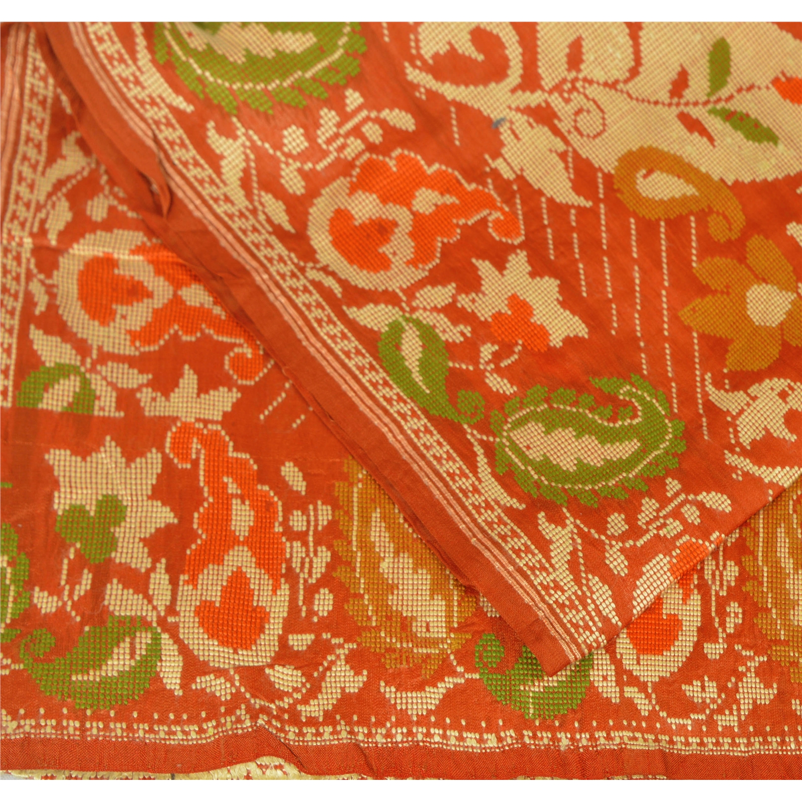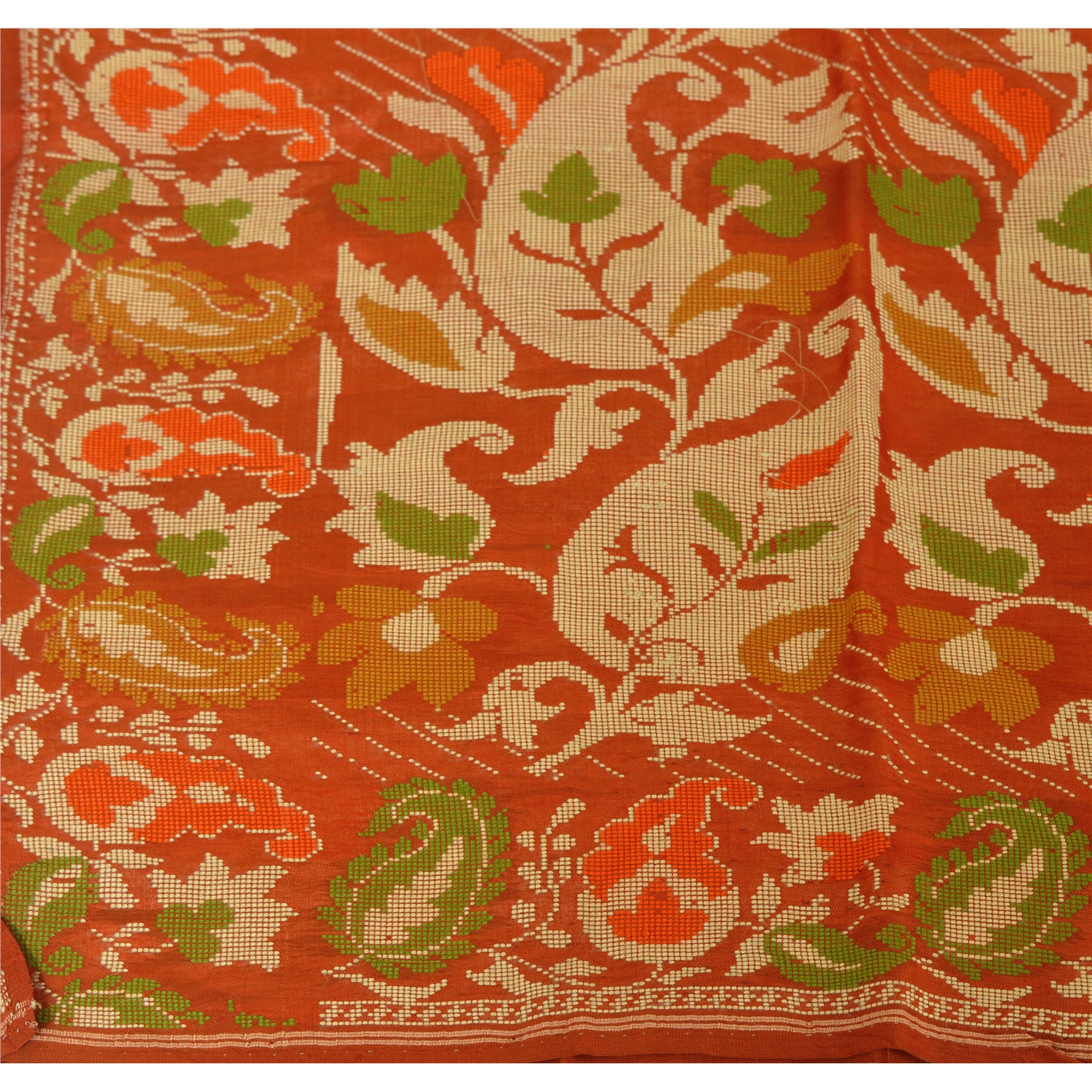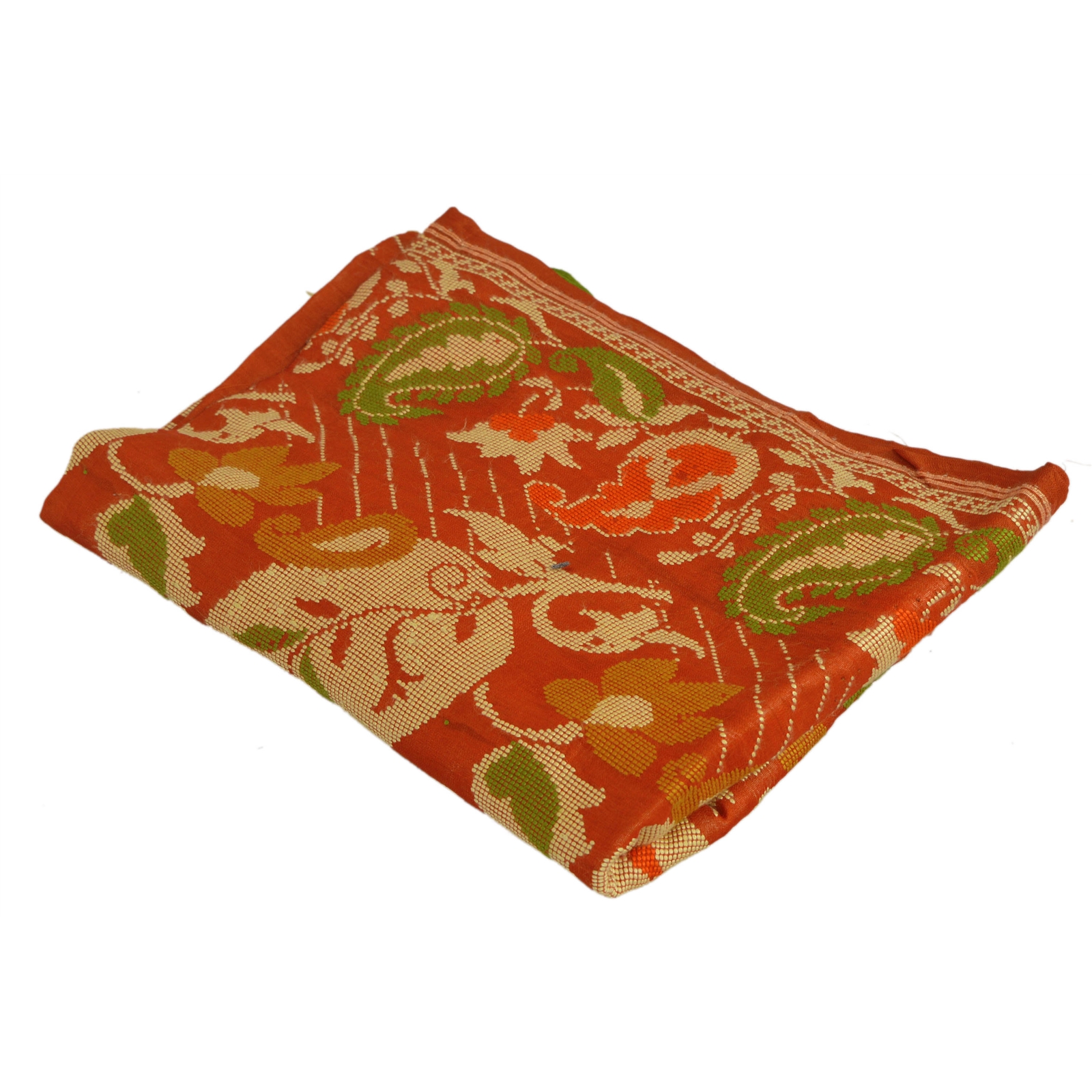 Nameonlabel : Sanskriti Vintage Pure Silk Hand Woven Orange Design Fabric Decor Craft 38"X43"