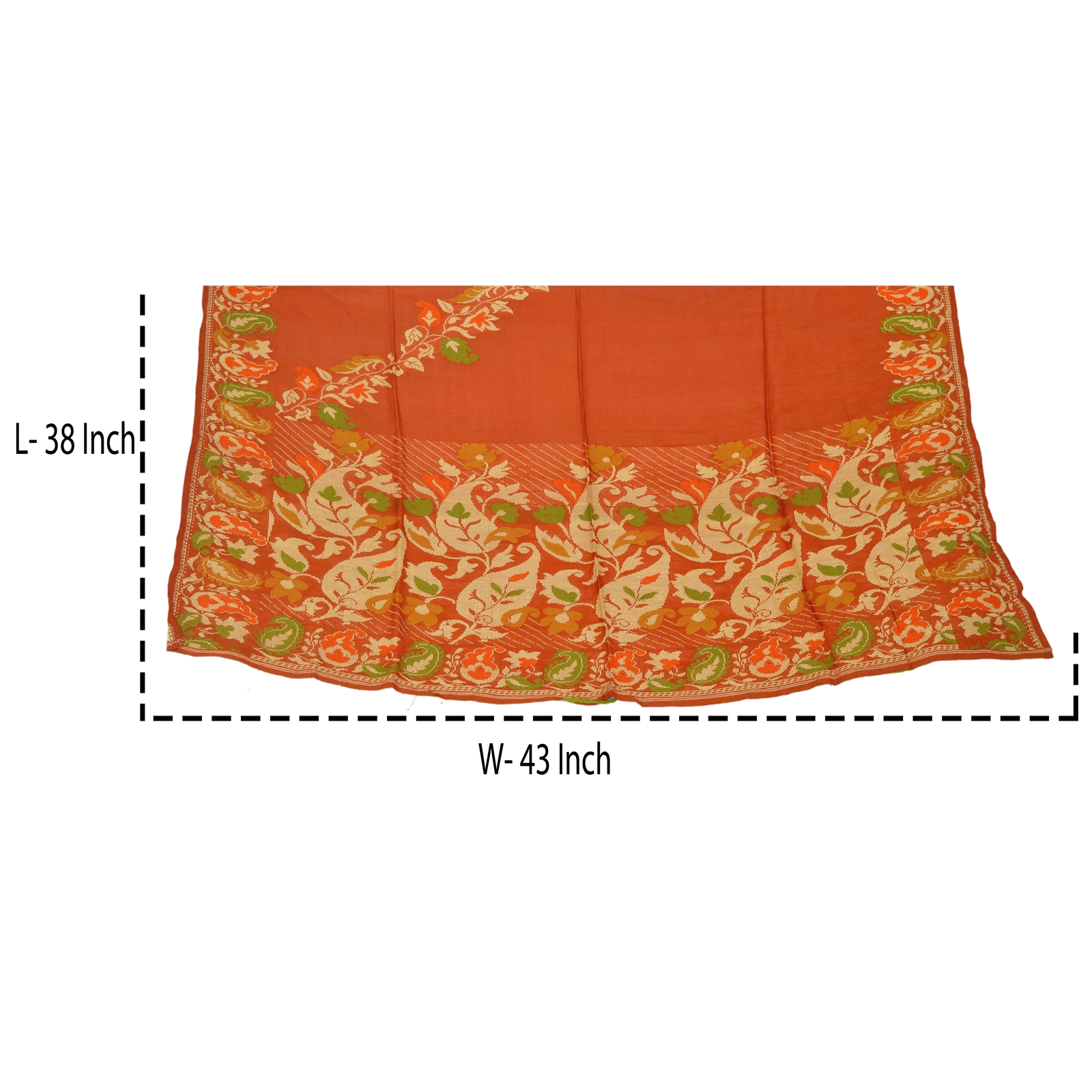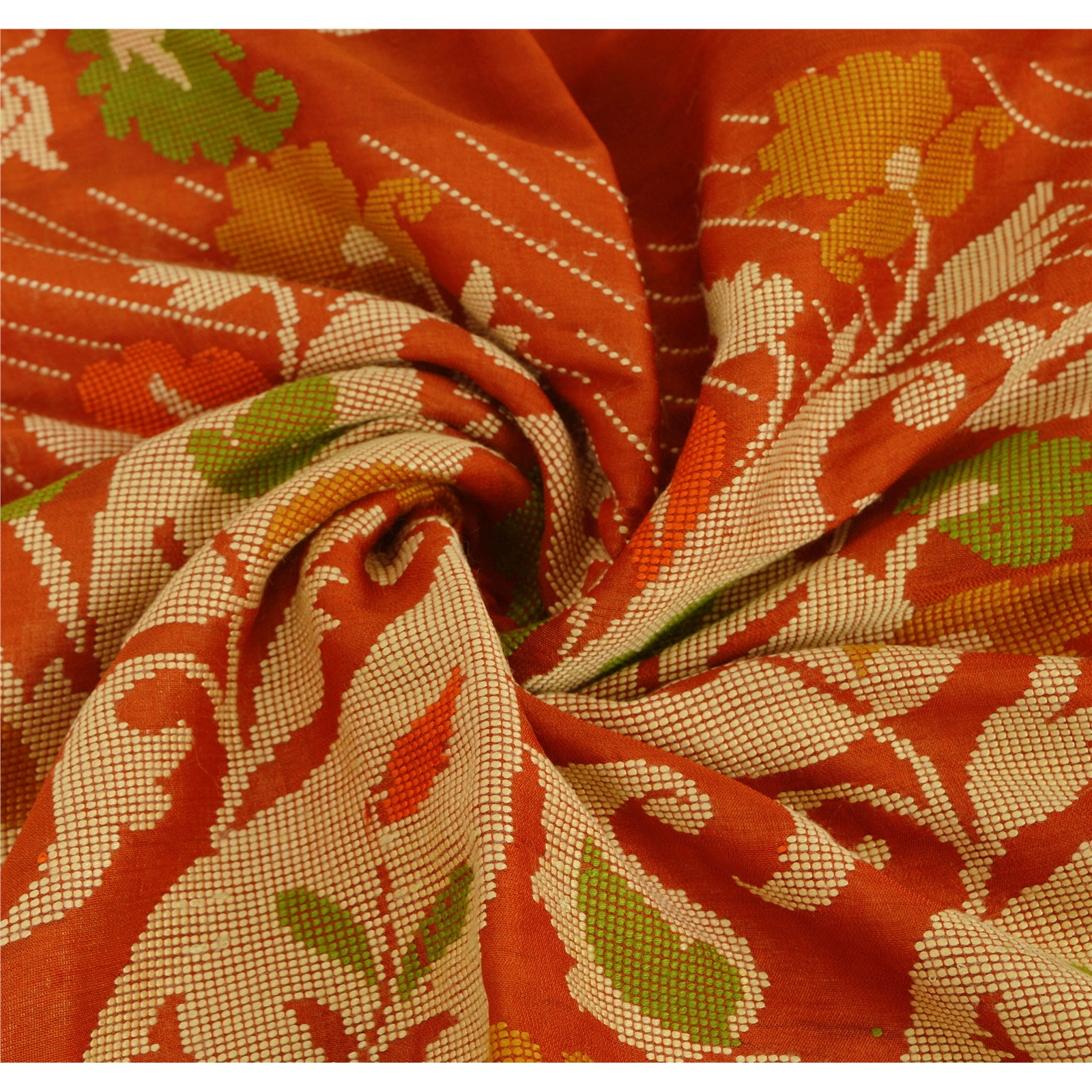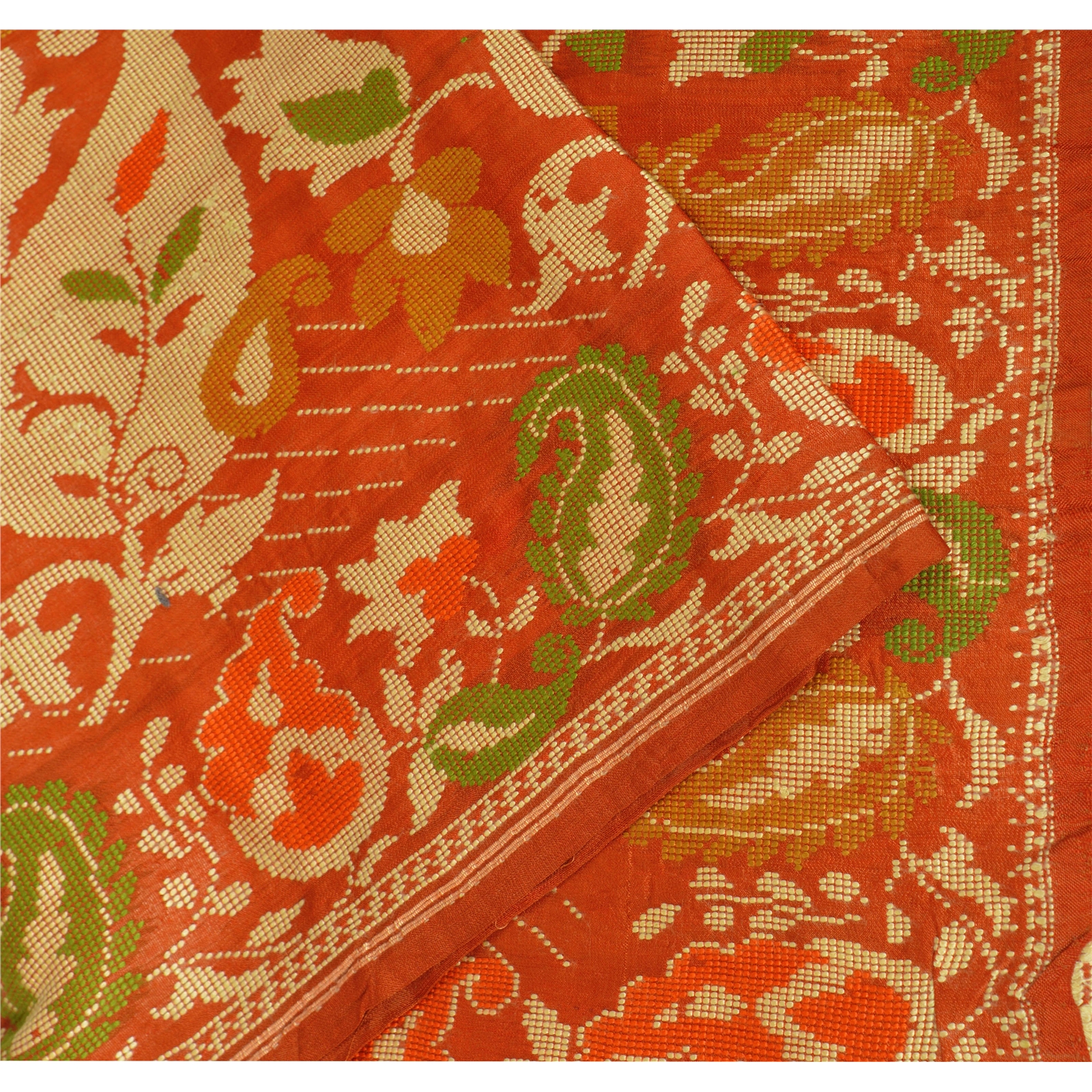 Nameonlabel : Sanskriti Vintage Pure Silk Hand Woven Orange Design Fabric Decor Craft 38"X43"