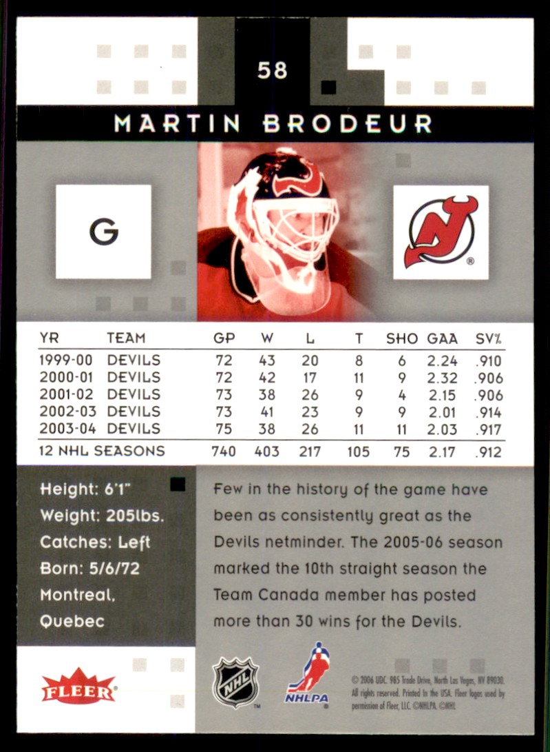 2004-05 Fleer Hot Prospects #58 Martin Brodeur New Jersey Devils